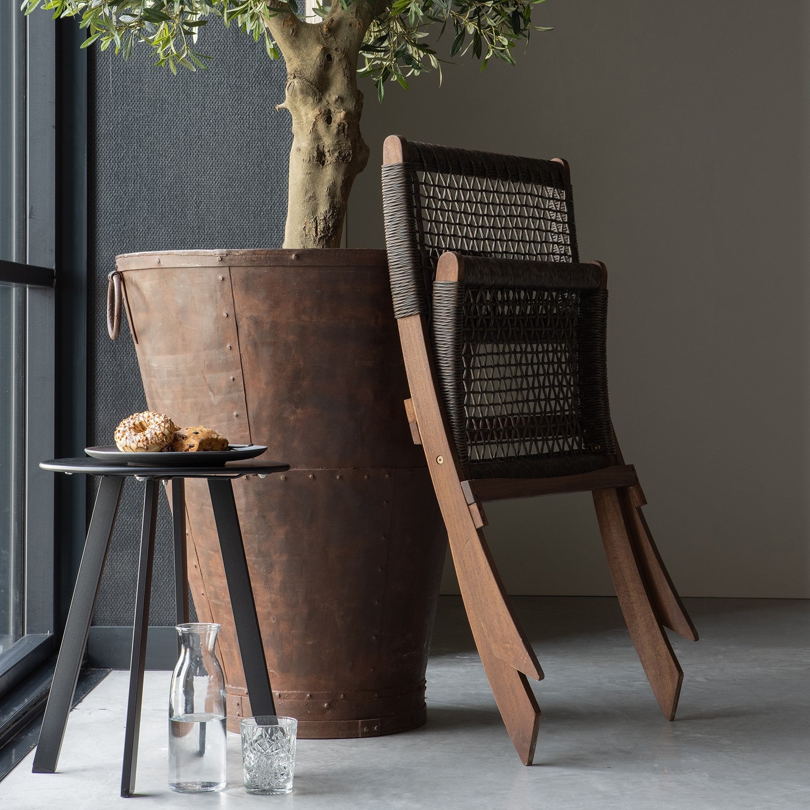 Deze klapstoel kan met gemak buiten staan, maar hij vindt de kou ietsje minder. Bescherm hem tegen de regen en nacht met een beschermhoes of plasticfolie. Geen zin in veel werk? Zet hem dan even binnen tijdens de wat minder mooie dagen. En veel ruimte heb je niet nodig, want je kunt hem gemakkelijk inklappen!