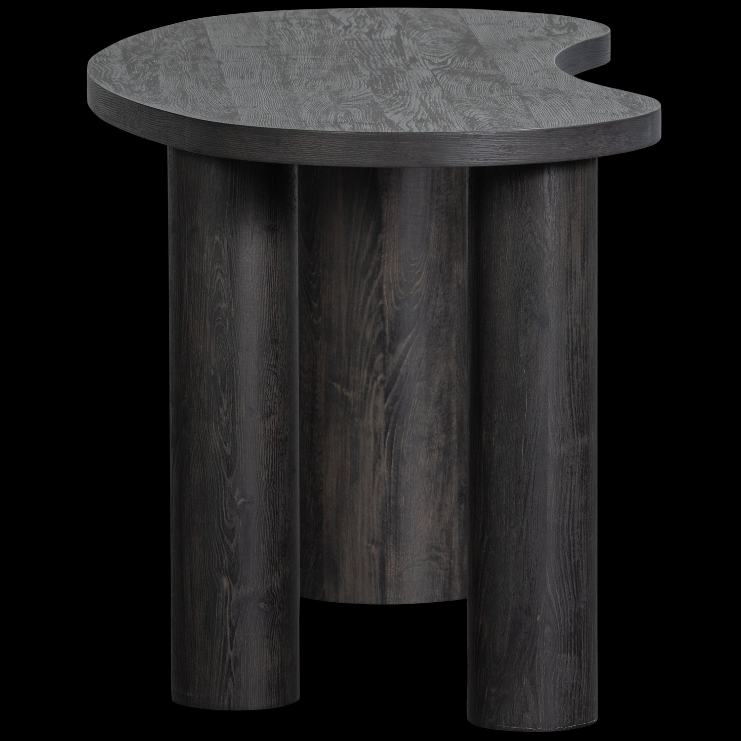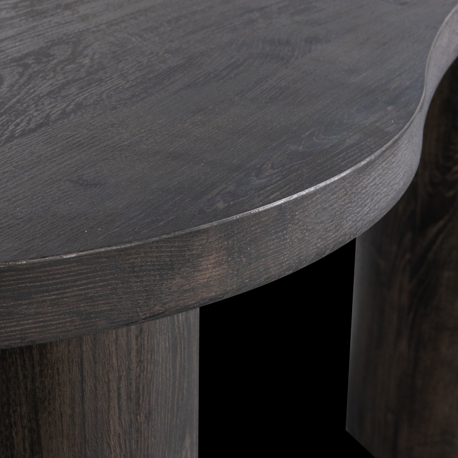 Tijdloze eenvoud: dat haal je in huis met deze Maan organische sidetable/bureau. De Maan sidetable/bureau is vervaardigd uit MDF, met een tafelblad dat is afgewerkt met 3D papier. De donkerbruine finish met duidelijke houtnerven zorgt ervoor dat de tafel een warme uitstraling heeft en goed past in een botanisch, retro of boho interieur