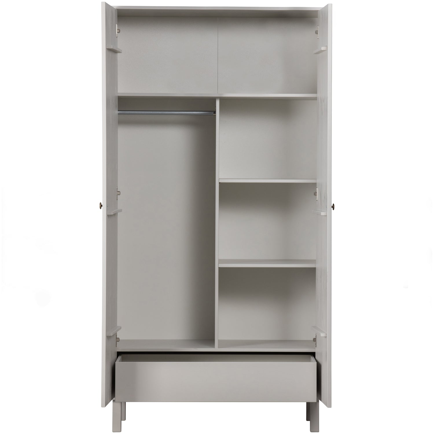 Madu is een stijlvolle, moderne garderobekast uit de collectie van het Nederlandse merk WOOOD. Madu is vervaardigd uit grenenhout met een wolkengrijze afwerking. Dit geeft de kast een tijdloze uitstraling. De goudkleurige knoppen in combinatie met het lichtgekleurde grenenhout geven de kast tevens een moderne en stoer karakter.