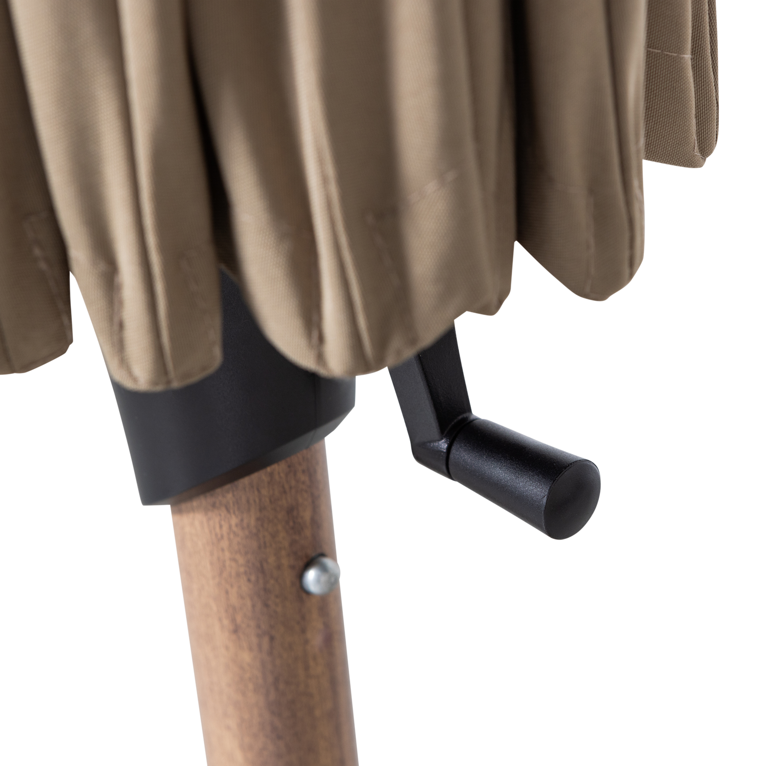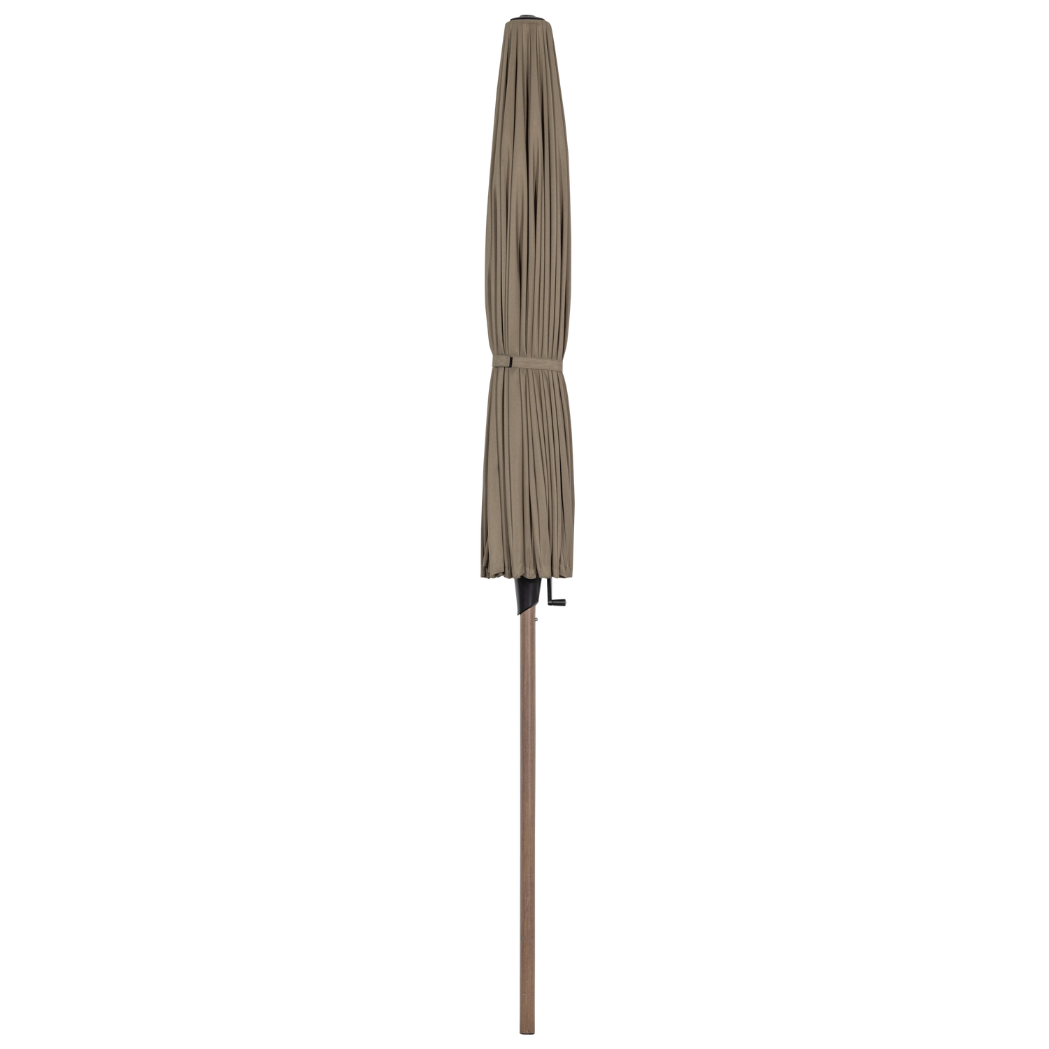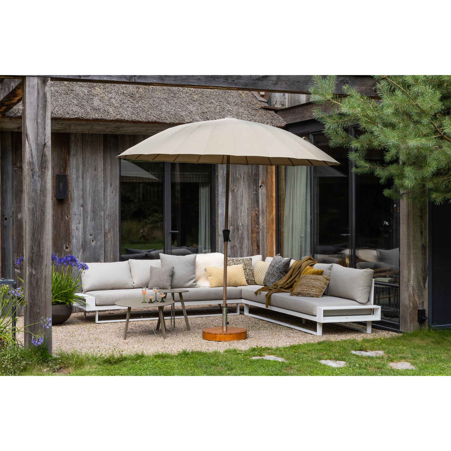 De Monica parasol is afkomstig uit de outdoor collectie van het Nederlandse merk WOOOD en heeft een moderne en stijlvolle uitstraling. De parasol kan eenvoudig worden geopend en gesloten met een hendel. De kleur van het polyester doek in combinatie met de houtlook aluminium frame zorgt voor een stijlvolle sfeer op jouw terras of balkon. Combineer de parasol met de Monica parasolvoet en je bent klaar voor de zonnige zomerdagen!