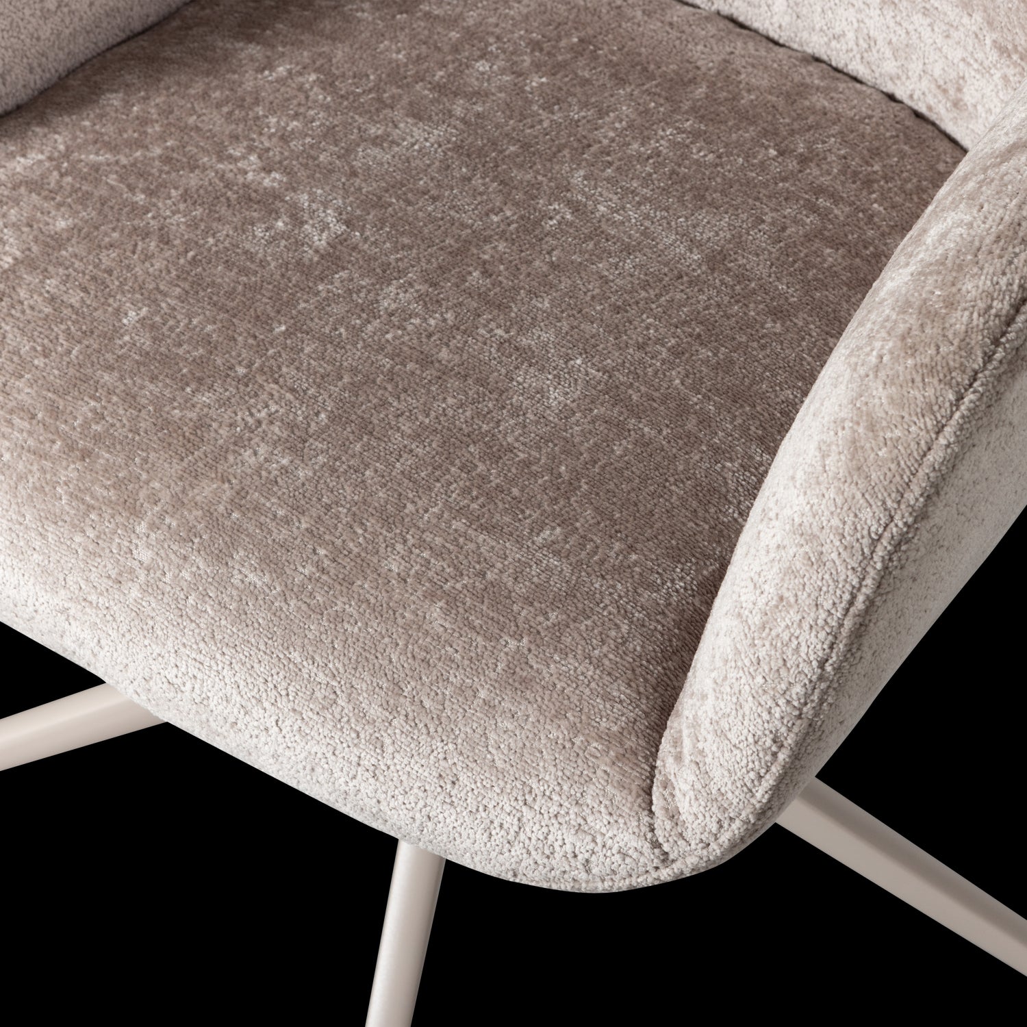 De Morros bureaustoel is bekleed met een chenille stof. Onze Angel chenille heeft een opvallende structuur, wat zorgt voor een luxe uitstraling en bijzondere glans. De stof is gemaakt van 100% polyester, wat het onderhoud zeer gemakkelijk maakt. De Angel voelt zacht aan en straalt warmte uit. De Martindale van deze chenille stof is niet getest.