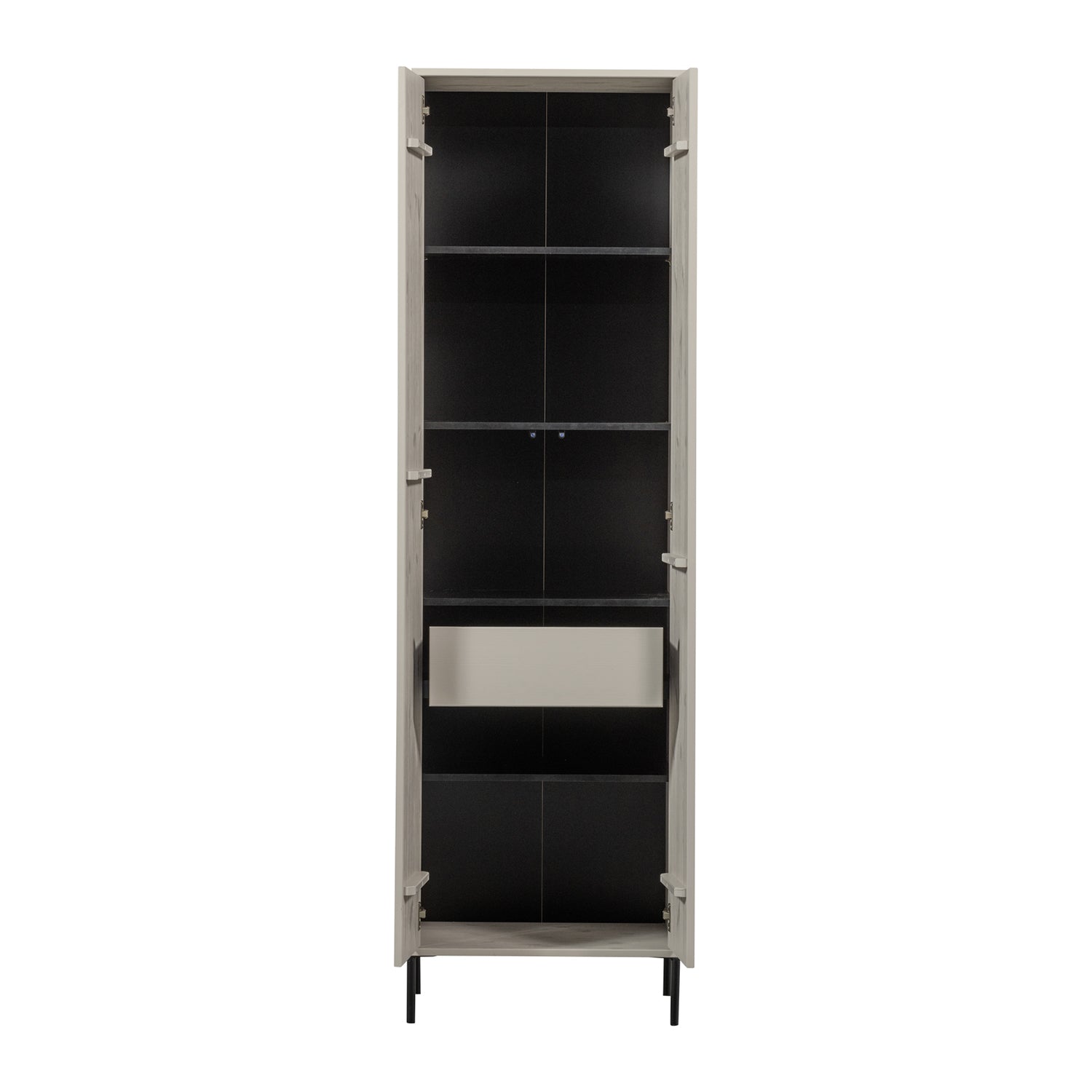 De populaire Gravure-serie van WOOOD is vernieuwd! Deze Gravure New hoge kast combineert strak design met praktische opbergruimte. Gemaakt van massief grenenhout in een warme dustkleur, met een zwart interieur en stoere metalen poten. Een stijlvol statement in elk interieur!