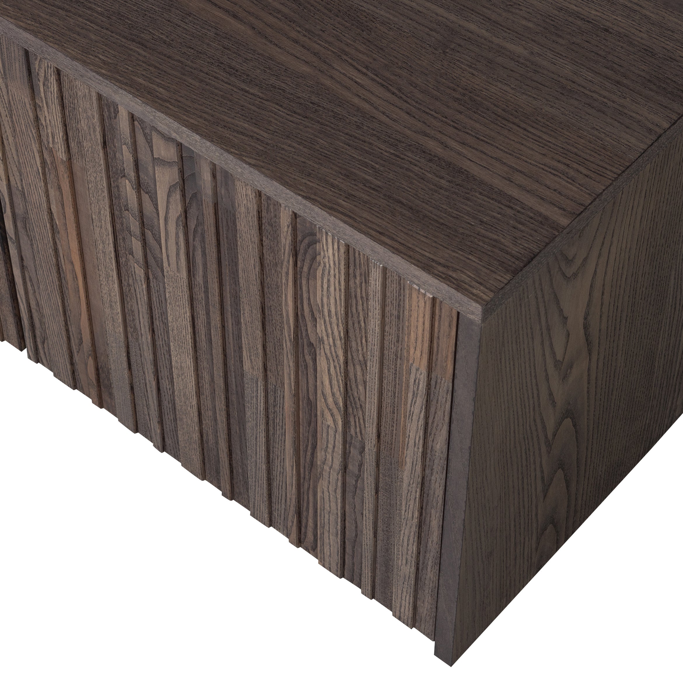 Essenhout is een iets zachte houtsoort met een strakke, rechte nerf. Items uit onze collecties zijn bekleed met een essenhout fineer, deze stroken worden verlijmd op een gladde houtsoort en vervolgens afgewerkt met een beits en transparante, beschermende coating. Essenhout kenmerkt zich door zijn levendige uitstraling, waarbij duidelijke kleurverschillen in het hout aanwezig zijn, zelfs na het aanbrengen van beits. Hierdoor kunnen er kleurnuances optreden, zowel tussen verschillende onderdelen als bij individuele meubelstukken.
