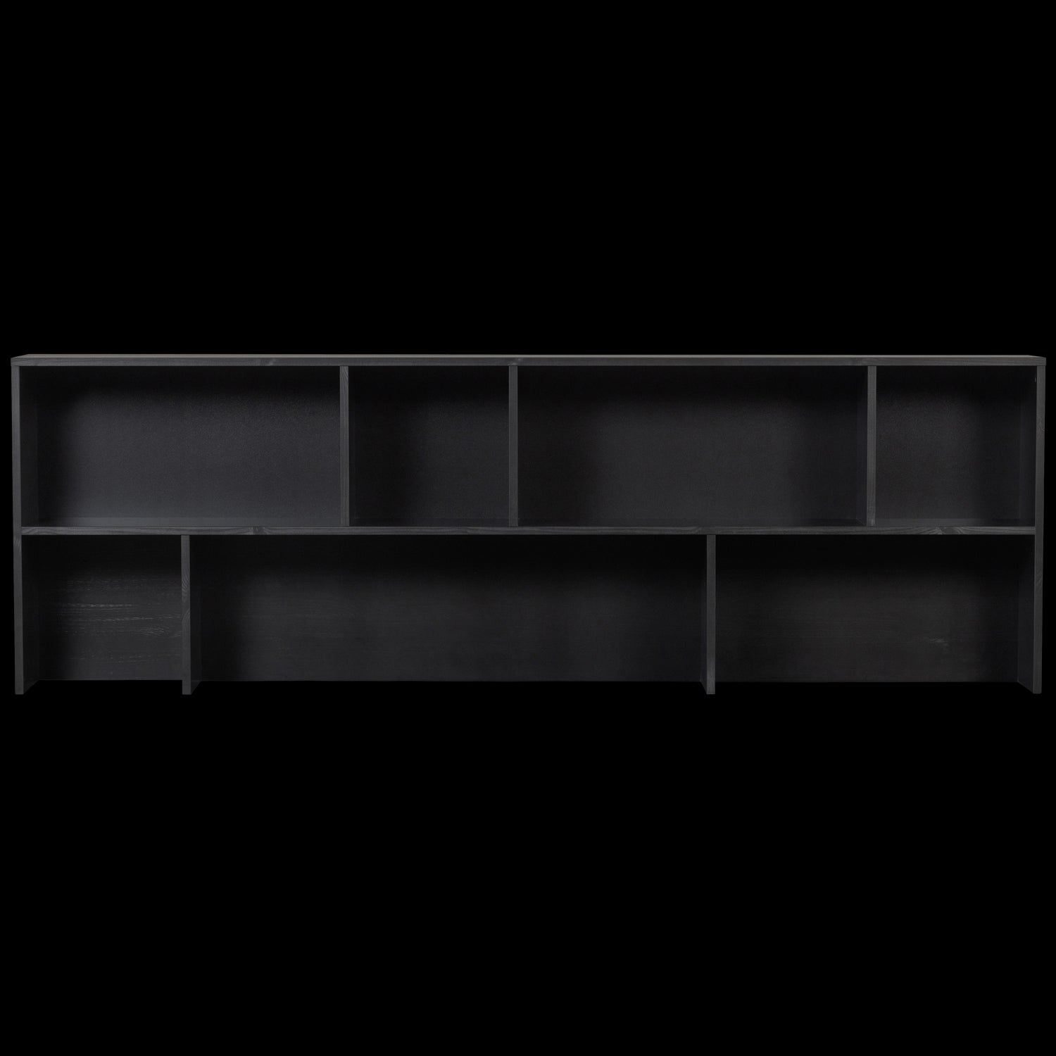 Duurzaam karakter De kast is gemaakt van FSC-gecertificeerd grenenhout, afkomstig uit goed beheerde bossen. Elke plank heeft zijn eigen, unieke nerfstructuur. De zwarte of dustkleurige afwerking geeft het geheel een moderne, warme uitstraling. Met zes open vakken van verschillende breedtes en een diepte van 28 cm heb je volop ruimte én overzicht. De stevige legplanken dragen tot 10 kg, het bovenblad zelfs 35 kg.