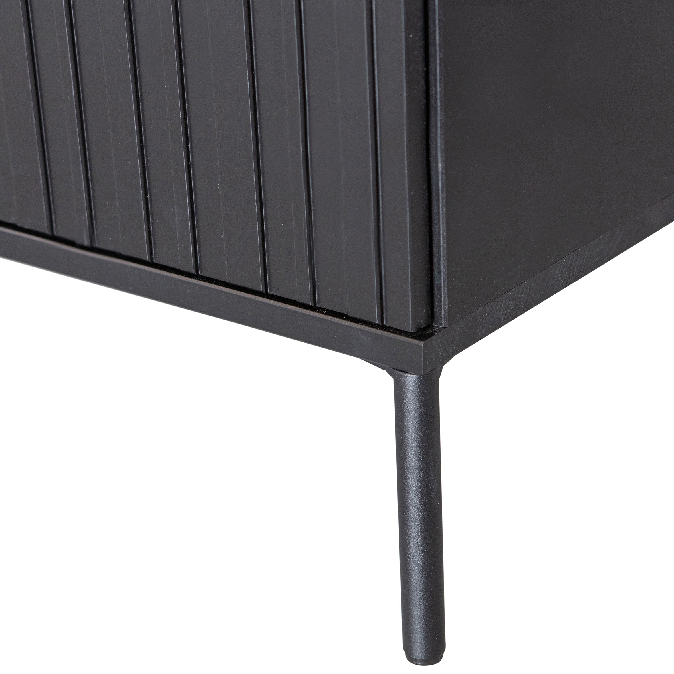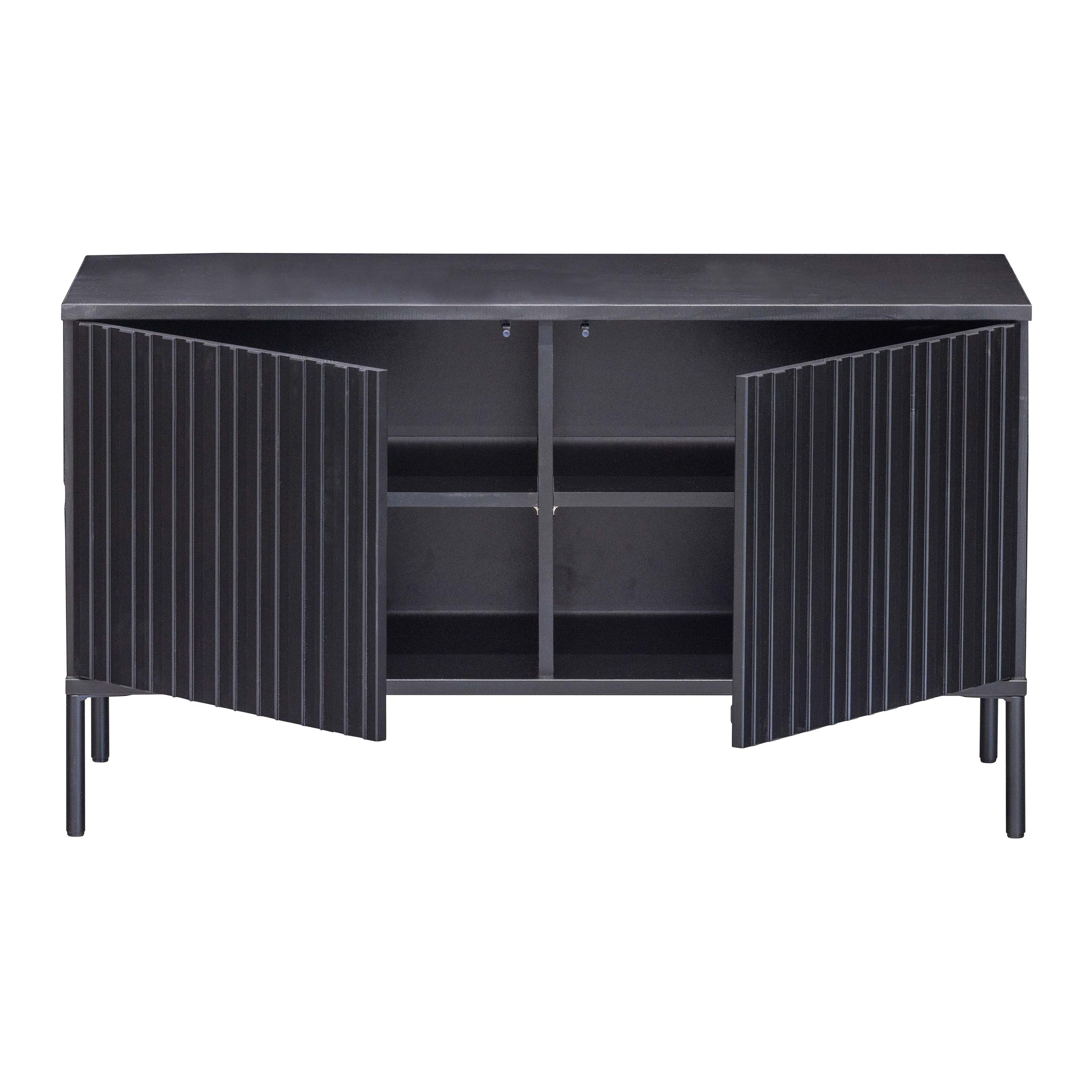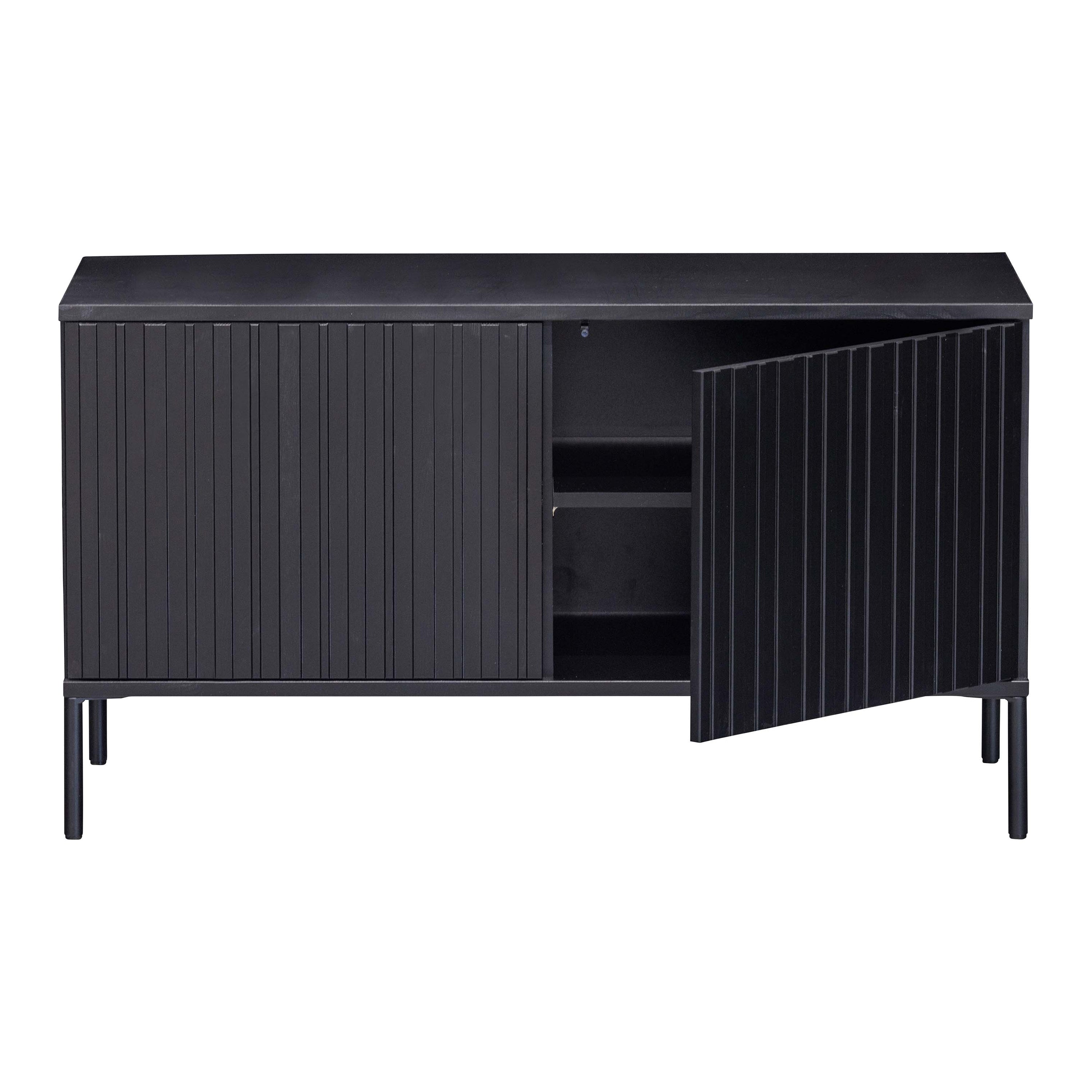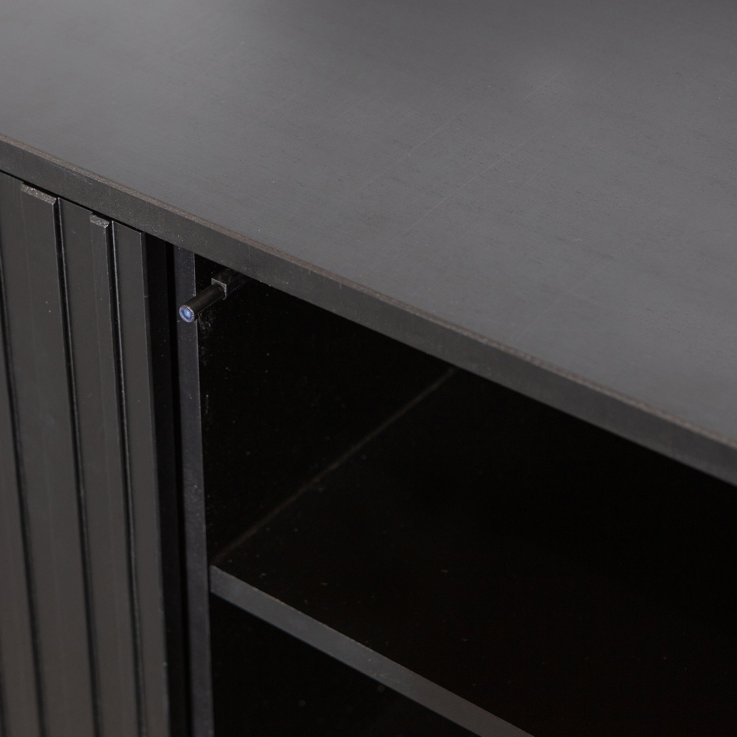 Design met slimme opbergruimte Achter de twee greeploze deuren – voorzien van een geluidloos push-to-open systeem – vind je zes vakken met ruimte voor media-apparatuur, kabels en meer. Een slimme kabeluitsparing aan de achterzijde maakt het aansluiten van apparatuur eenvoudig en netjes.