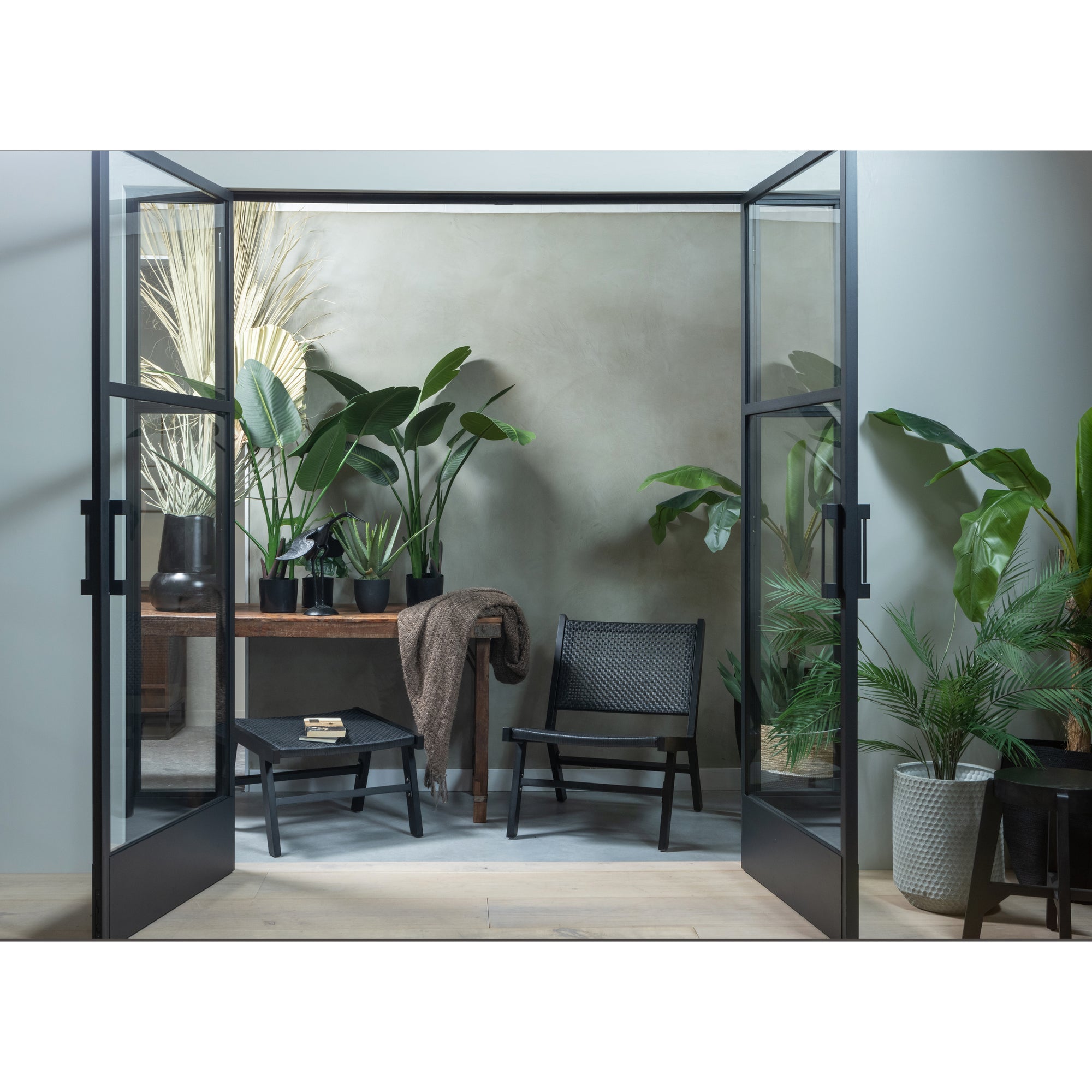 - Zwart aluminium frame met weefstructuur van polyethyleen