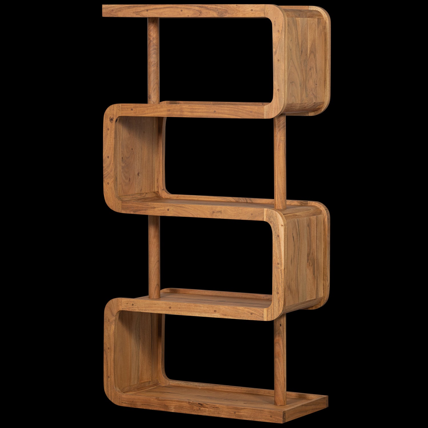 Een pareltje voor decoratiewonders: de Rattle open kast uit de collectie van het Nederlandse interieurmerk WOOOD biedt eindeloze mogelijkheden voor het presenteren van jouw mooiste woondecoratie en waardevolle herinneringen. De Rattle open kast heeft een organische vorm (ratelslang look-a-like) en een mooie, roodbruine houttint.