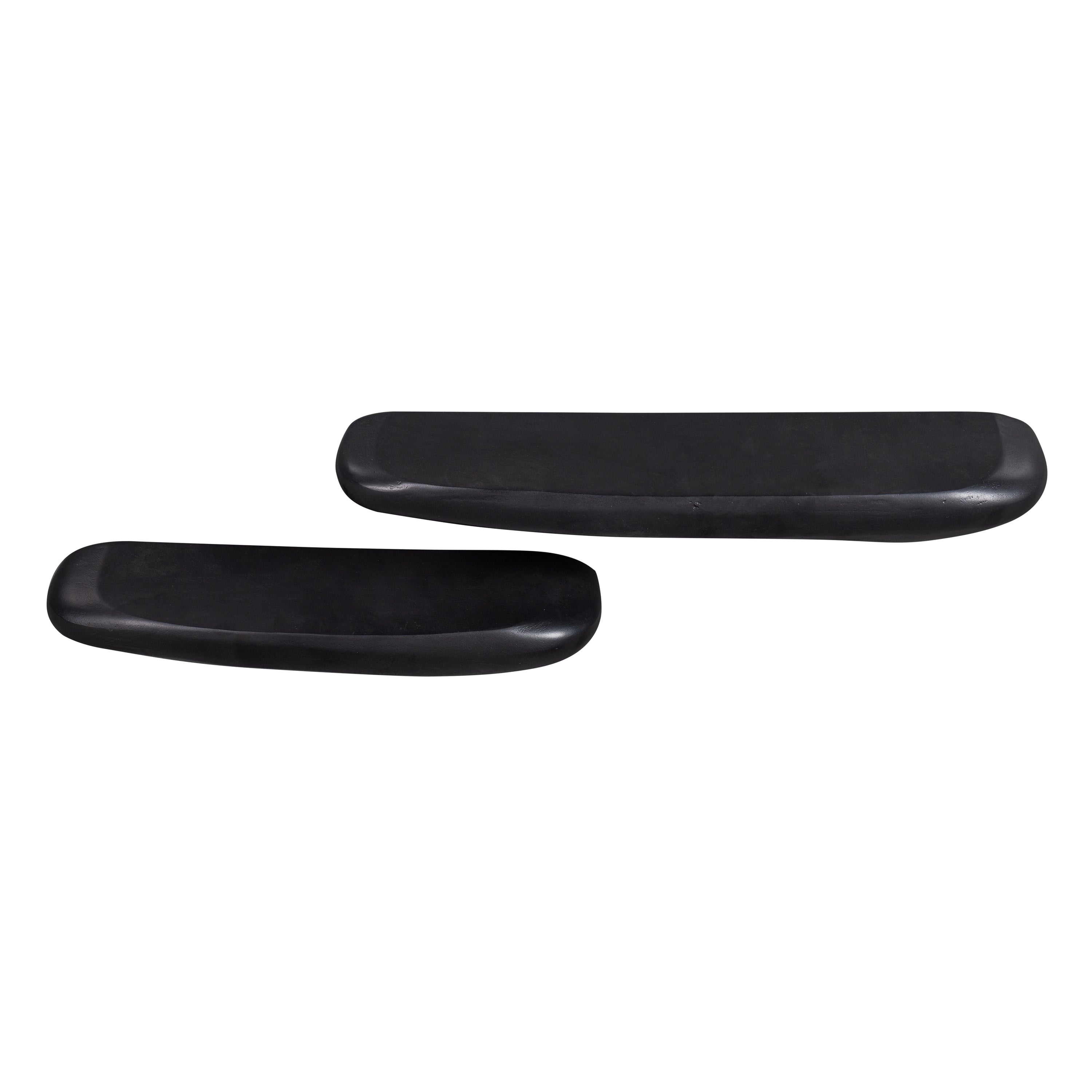 Het aanbod aan woondecoratie binnen de collectie van het Nederlandse interieurmerk WOOOD is uitgebreid met deze Rock wandplank. De Rock wandplank biedt genoeg ruimte voor het tentoonstellen van diverse accessoires. De zwarte coating zorgt voor een stoer en modern uiterlijk, terwijl de organische vormen speelsheid toevoegen aan het item.