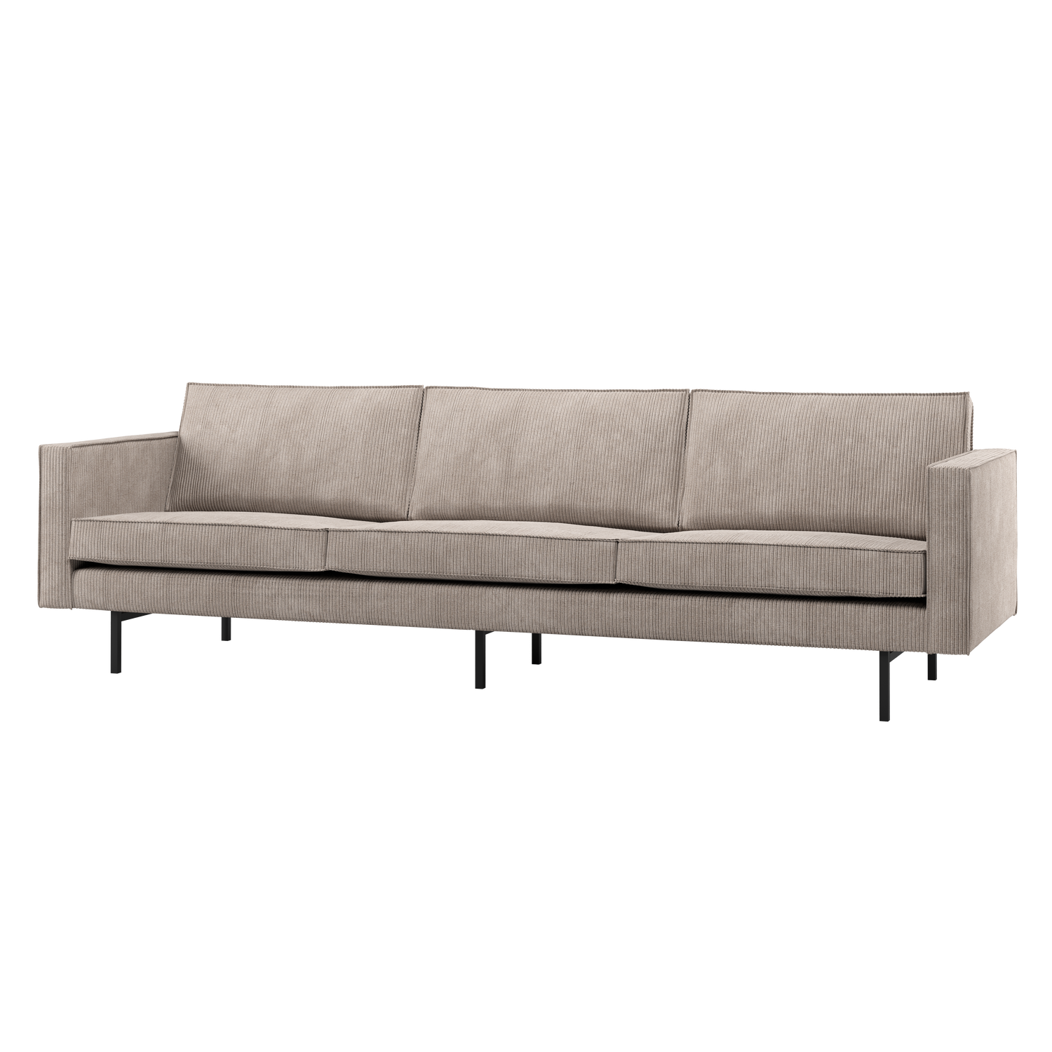 Materiaal De Rodeo bank is opgebouwd uit een combinatie van massief hout, spaanplaat, polyurethaan schuim met een dichtheid van 25 kg/m3 en een zigzag vering. De zitting bevat een polyurethaan schuim met een dichtheid van 30 kg/m3 (T3037). De rugleuning bestaat uit een combinatie van 70% gesneden schuim en 30% siliconen. Deze Rodeo is bekleed met onze trendy Remy rib stof. De Remy Rib is een moderne stof die een luxe uitstraling biedt. Dankzij de bijzondere jacquard weeftechniek heeft de stof een rijke textuur en een fluweelachtig uiterlijk. Onze Ruby Ribstof is gemaakt van 100% polyesterdraad, wat zorgt voor een zachte touch. Met een Martindale score van 80.000 hoef je je geen zorgen te maken over krassen of pillen. Bovendien heeft de ribstof een verstevigde backing en oogt volumineus vanwege de brede banen.