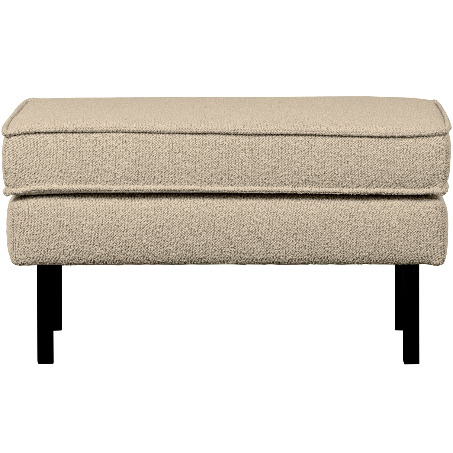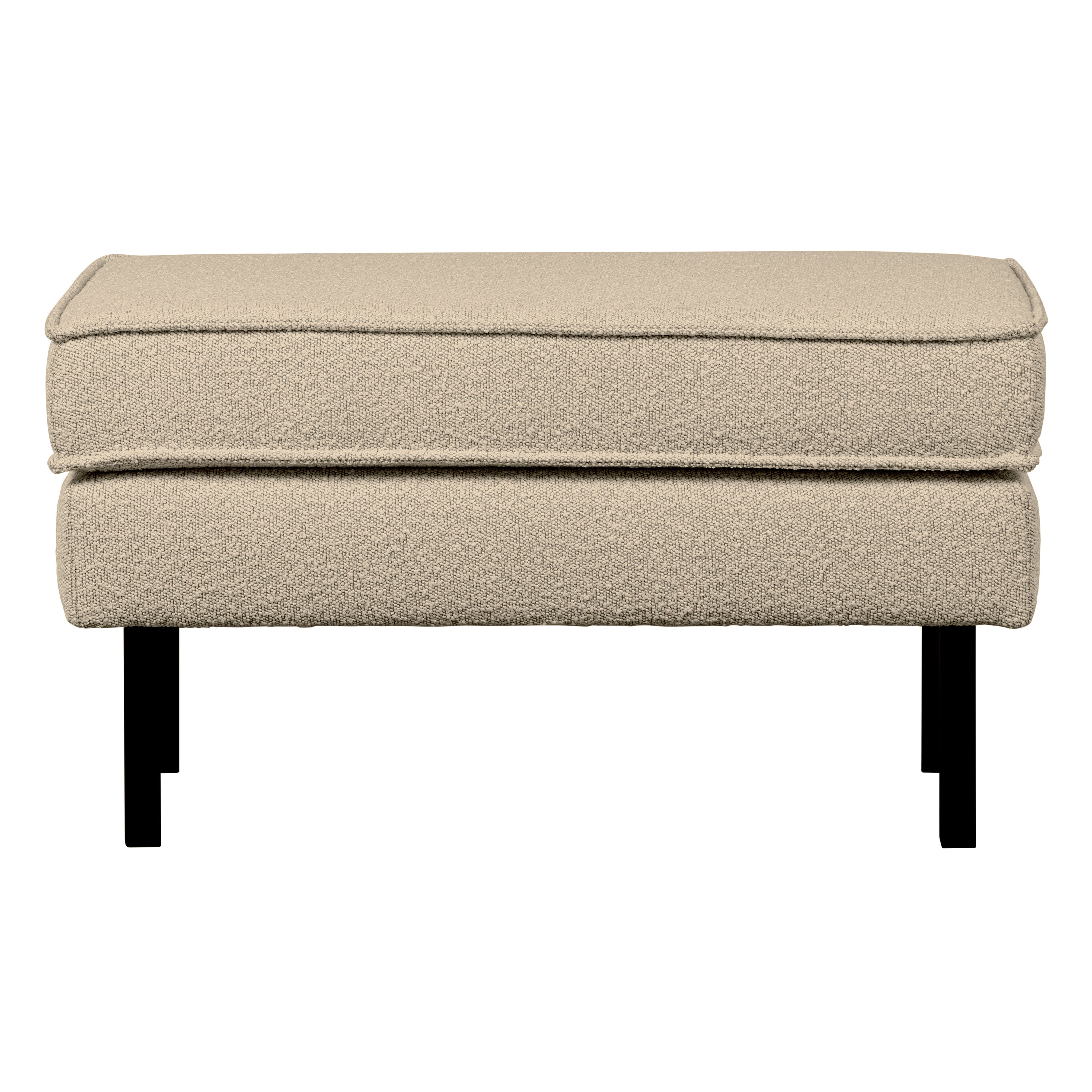 De Rodeo hocker is opgebouwd uit een combinatie van massief hout, spaanplaat, polyurethaan schuim met een dichtheid van 25 kg/m³ en een zigzag vering. De zitting bevat een polyurethaan schuim met een dichtheid van 30 kg/m³ (HR3532). Deze Rodeo is bekleed met een zachte bouclé. Het materiaal van de Colmar bouclé stof speelt in op de laatste trend: zachte materialen. De stof is comfortabel en heeft een elegante textuur. Onze Colmar bouclé heeft een Martindale van 100.000, wat betekent dat de stof geschikt is voor intensief gebruik. De dichte weeftechniek zorgt voor de sterkte van de stof, waardoor deze niet snel zal slijten of scheuren. Ook heeft elke kleur een hoge kleurvastheid, maar het is aangeraden om direct zonlicht te vermijden om kleurnuances te voorkomen. Afmetingen