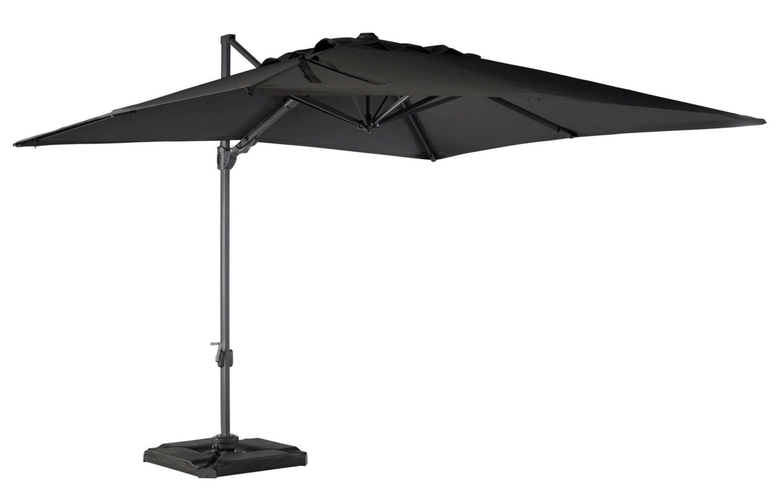 Belangrijk: de WOOOD Roma zweefparasol is inclusief kruisvoet en een beschermhoes De kruisvoet alleen geeft niet voldoende gewicht voor de parasol Je kunt zware (zwarte of grijze) terrastegels op de kruisvoet leggen of de kunststof verzwaringselementen bestellen, deze set bestaat uit totaal 4 delen en zijn daardoor makkelijk verplaatsbaar Vul ze voor gebruik op met zand!