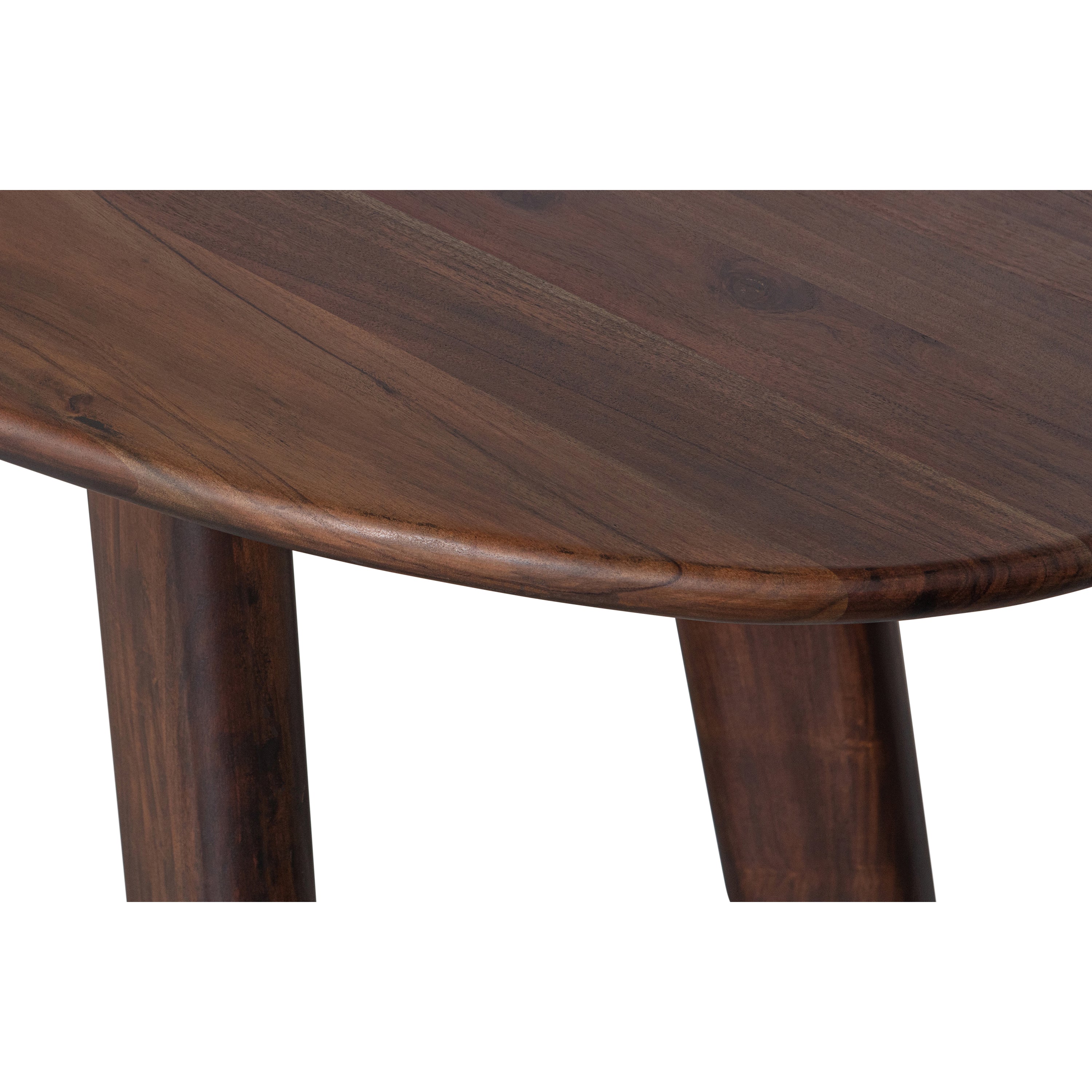 De salontafel is vervaardigd uit geschuurd mangohout met een walnootkleurige finish. Mangohout staat bekend om de warme goudbruine kleur, duurzame groei en lange houdbaarheid. Mangohout wordt ook gekenmerkt door duidelijk zichtbare nerven en kleurnuances. De nerven, een gele gloed of donkere lijnen en knoesten zorgen ervoor dat elk mangohouten item uniek is.