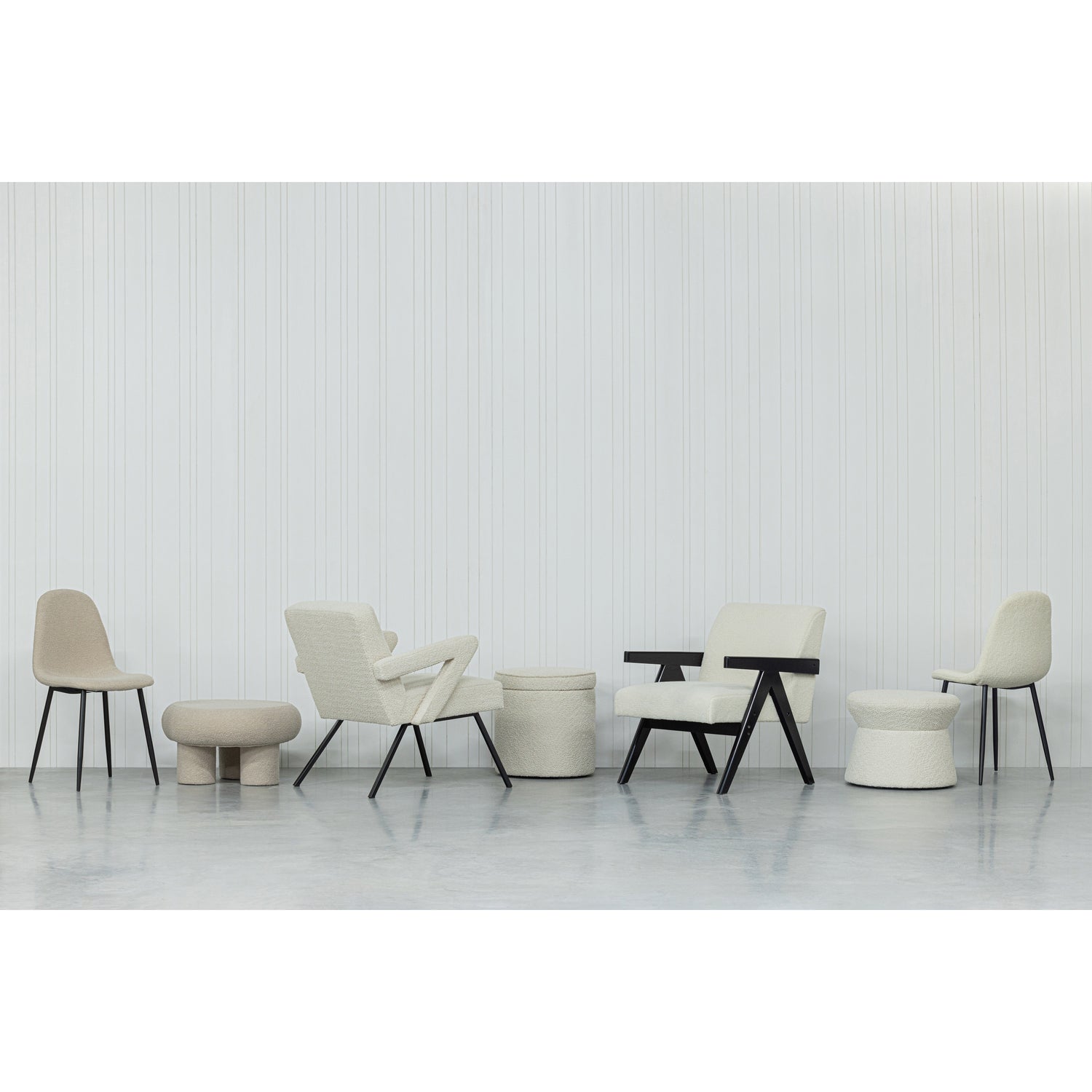 Strak gevormd in een zacht, wollig jasje. De Rowan poef is een leuke toevoeging voor een Scandinavisch interieur. De Rowan poef komt uit de collectie van het Nederlandse interieurmerk WOOOD en is bekleed met een heerlijk zachte bouclé.