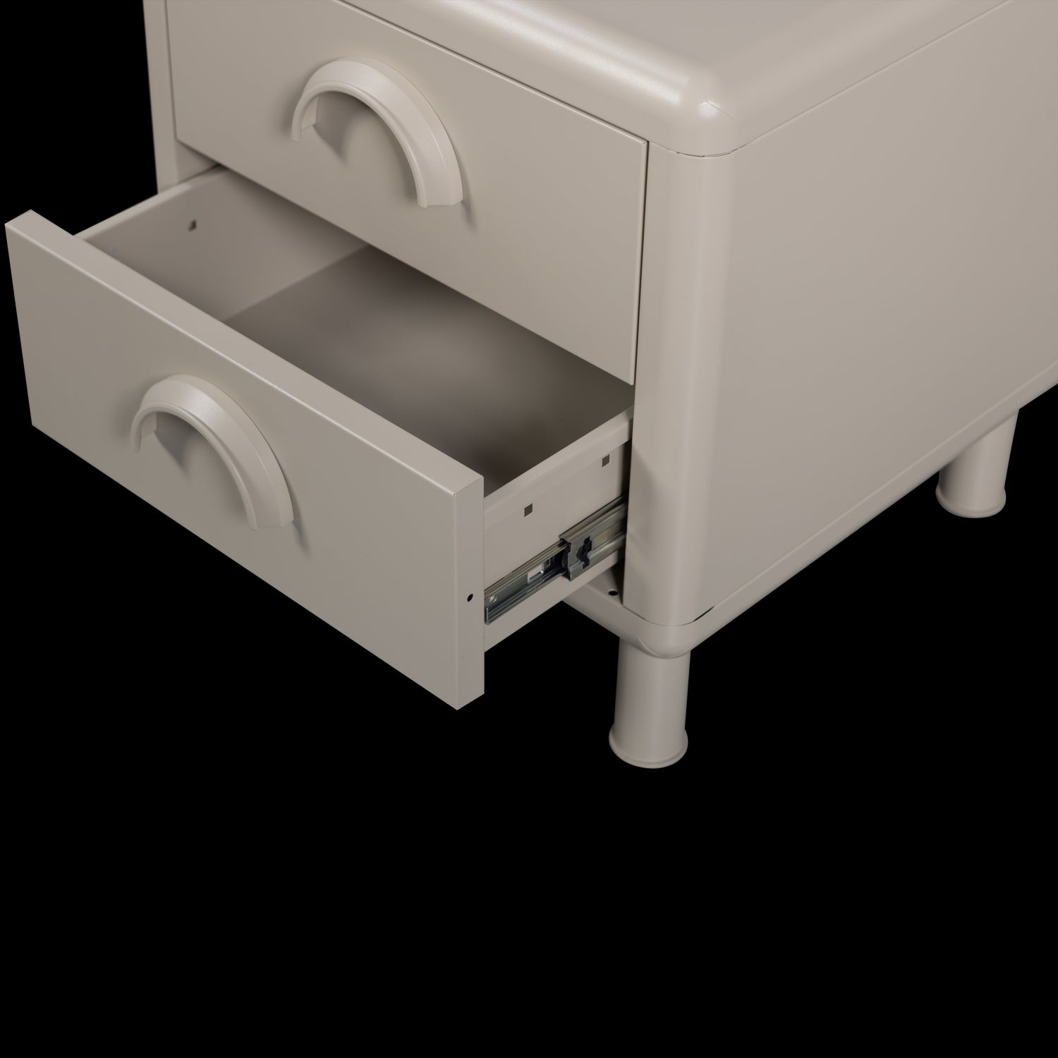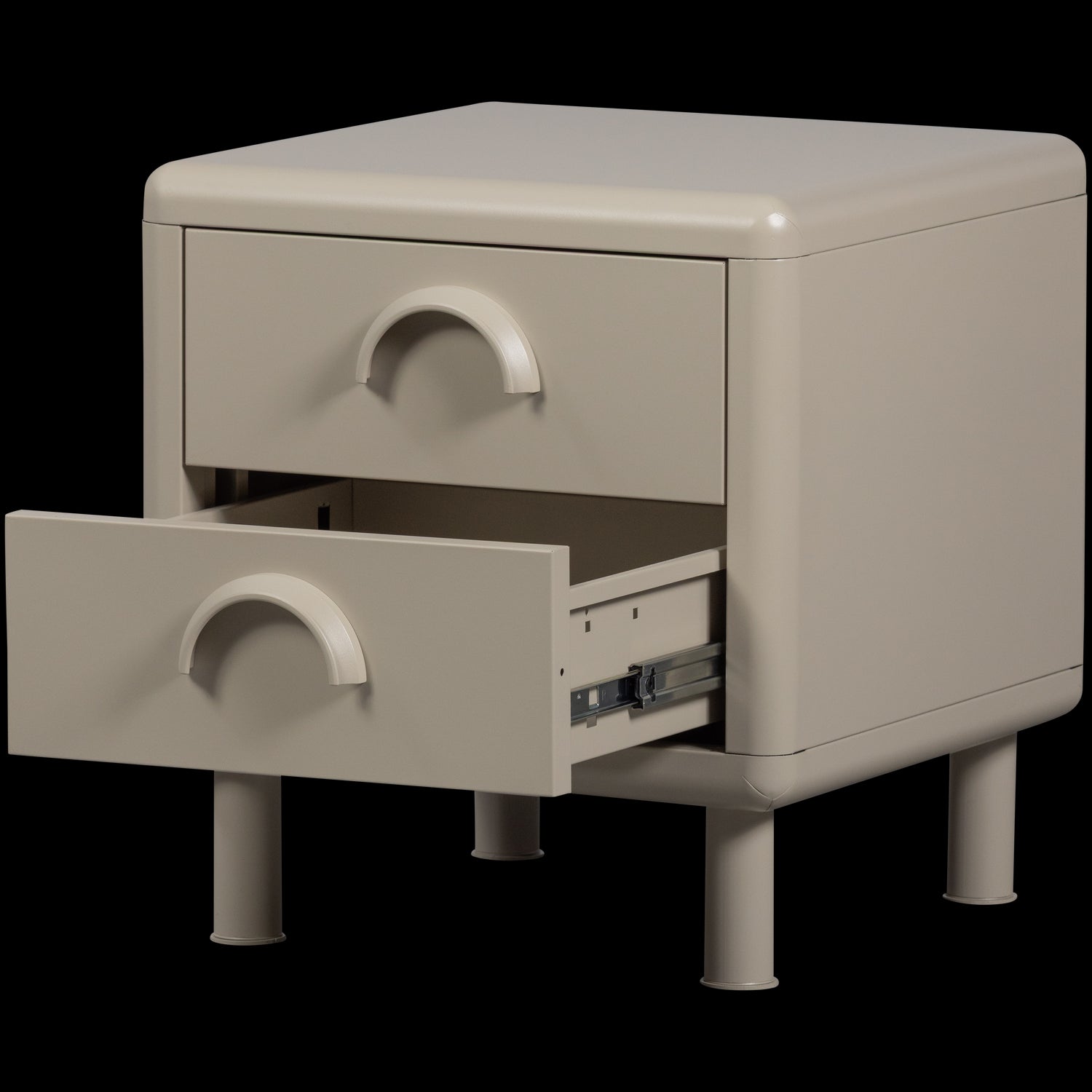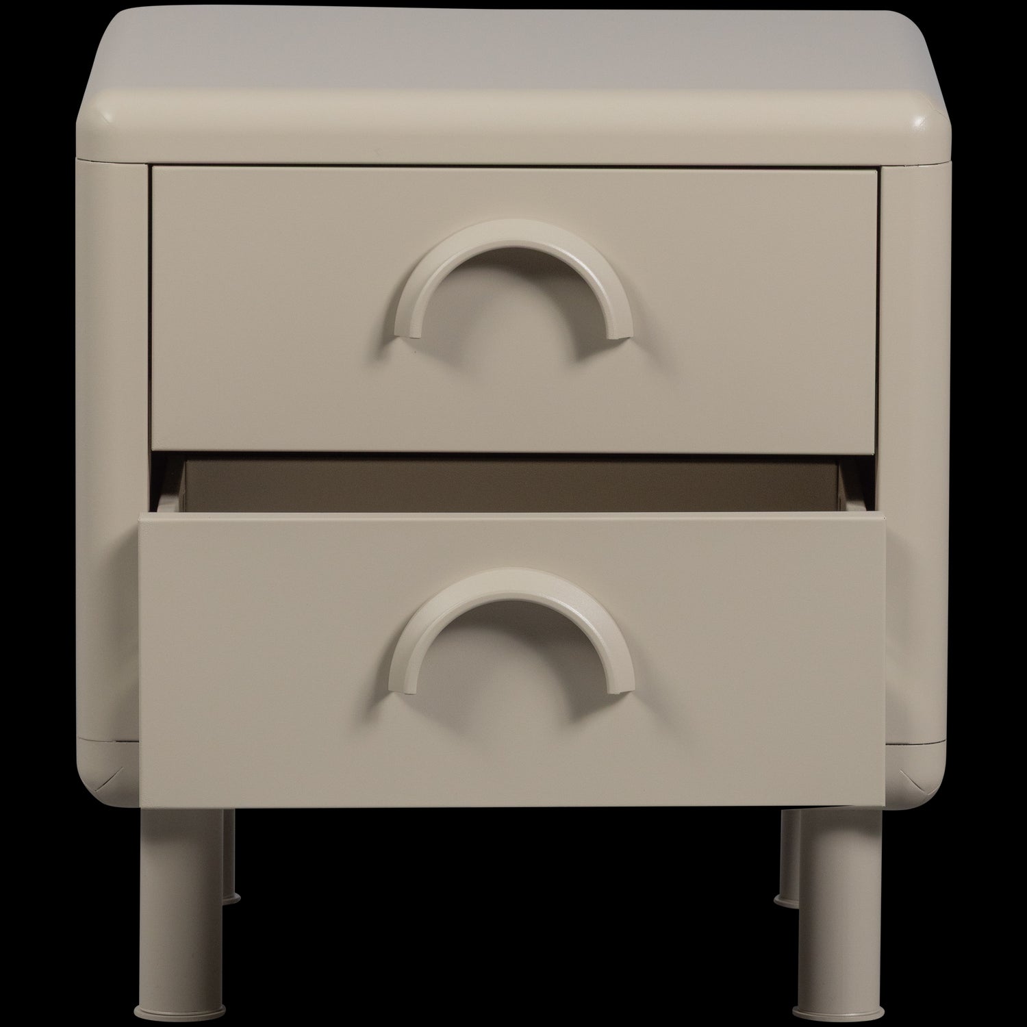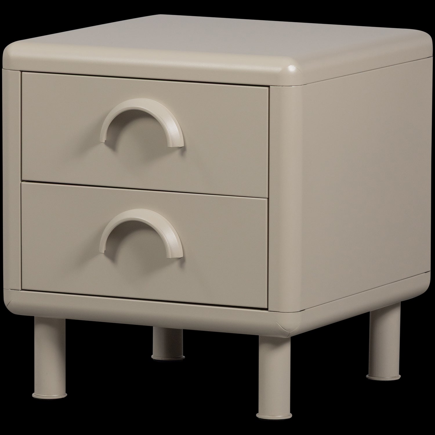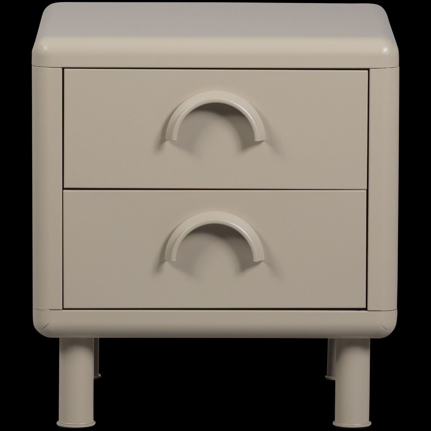 Rune is een opvallend ladekastje met een retro design uit de collectie van het Nederlandse merk WOOOD. Dit speelse opbergertje is uitgerust met twee lades, elk voorzien van een boogvormige handgreep. Rune biedt genoeg ruimte om diverse spullen netjes en uit het zicht op te bergen, waardoor het niet alleen praktisch is als nachtkastje, maar ook uitstekend dienst doet als compacte ladekast in andere ruimtes.