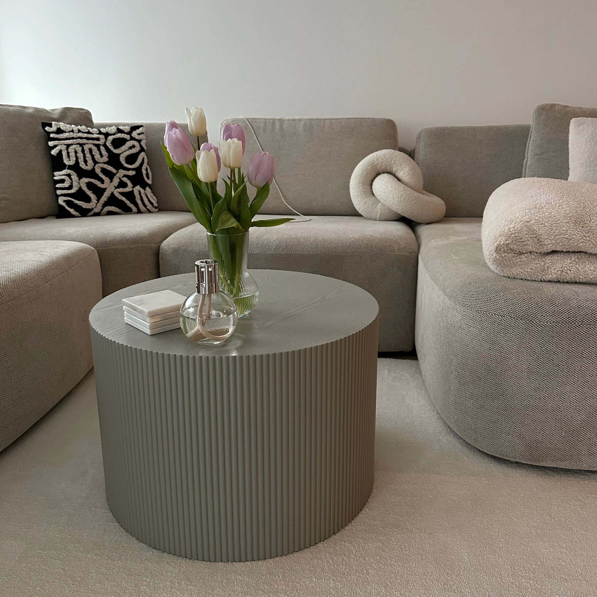 - Ronde bijzettafel met verticale reliëf strepen: een echte eye-catcher!