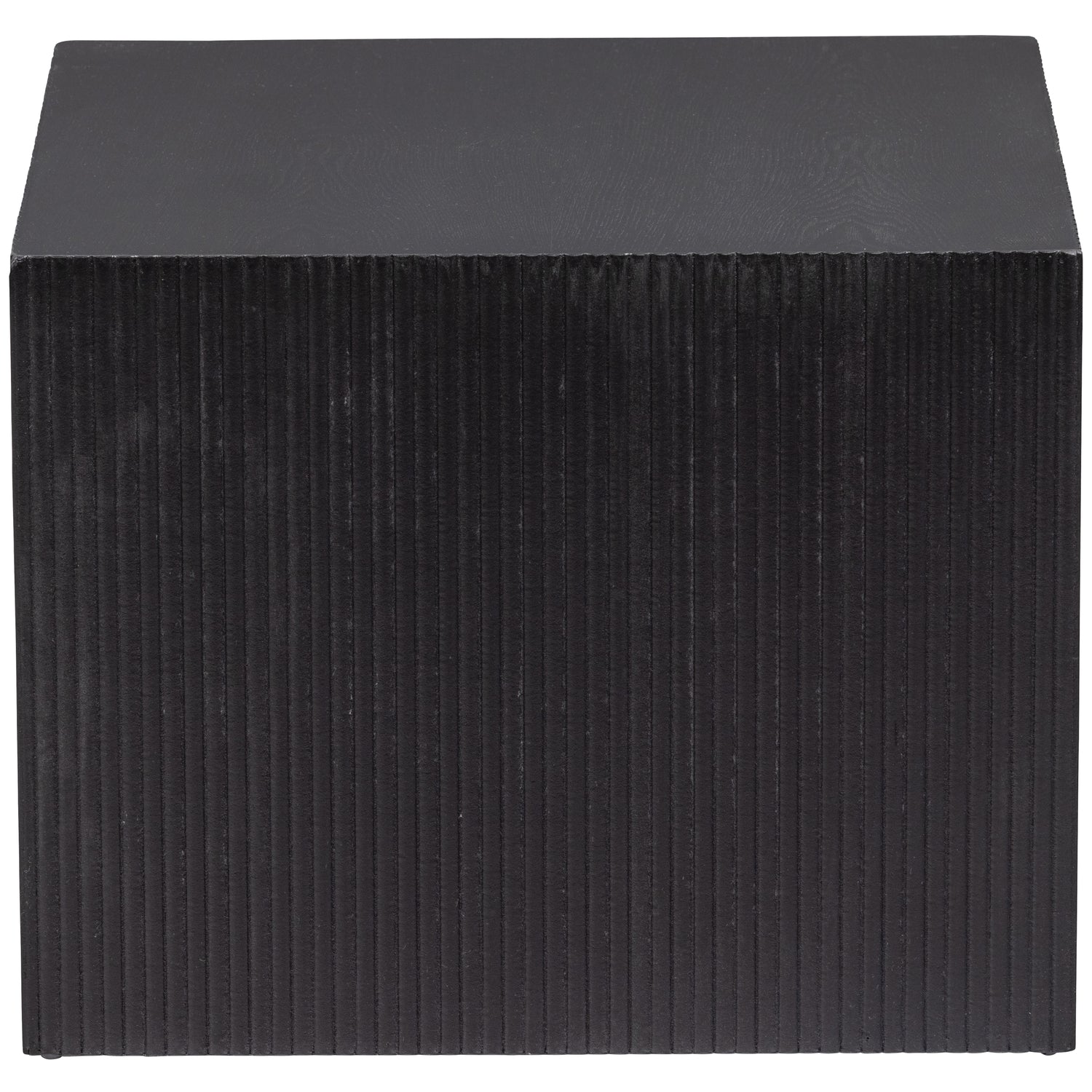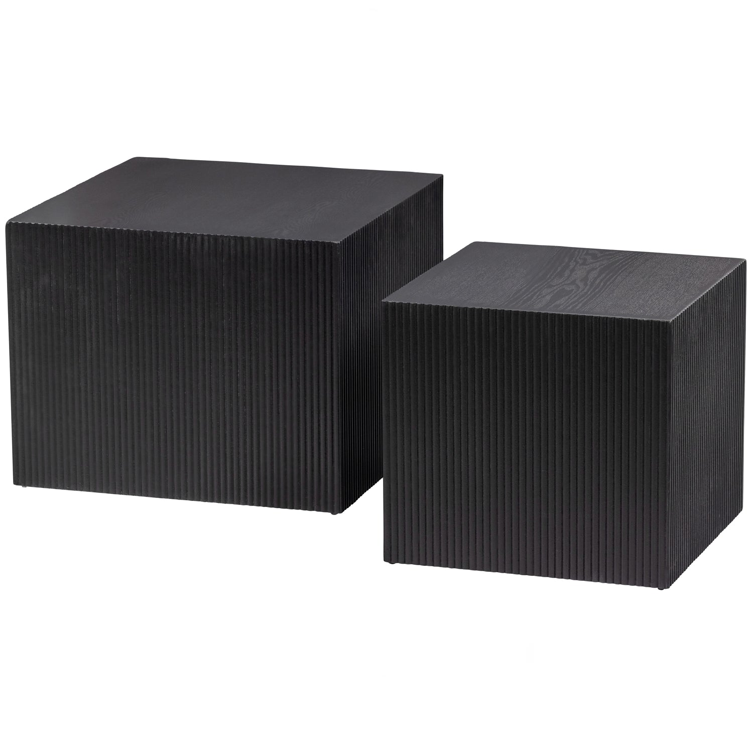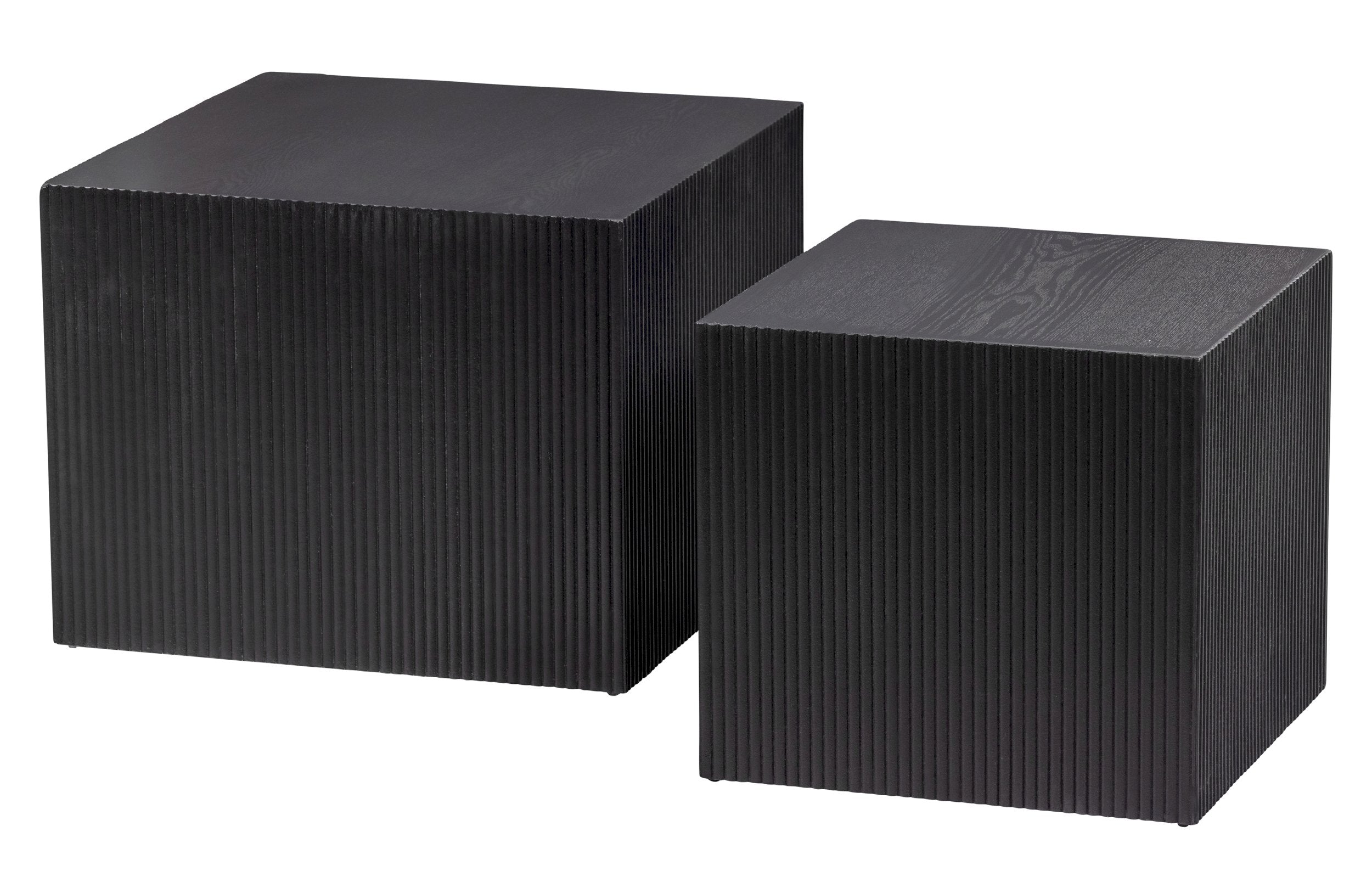 De grootste van de twee heeft het formaat (hxbxd) 40x50x50 cm, de kleinere variant is (hxbxd) 37x40x40 cm. Beide tafeltjes zijn gemaakt van grenenhout MDF in een matzwarte lak. De onderzijde van de tafels is open, de dikte van het hout is 1 cm. De grote versie weegt 7,5 KG, de kleine 4,3 KG. Beide Sanne tafels kunnen elk 20 KG dragen.