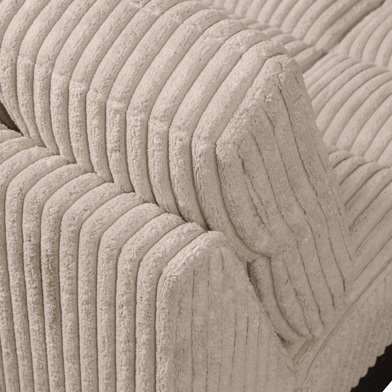 Second Date is opgebouwd uit een combinatie van massief hout, spaanplaat, multiplex en een zigzag vering. De zitting is opgebouwd met een T3542 schuim bedekt met HR3320 schuim en een opvulling van siliconen-gesneden schuimmix. De rugleuning is eveneens gevuld met deze schuimmix wat zorgt voor een hoog zitcomfort. Deze Second Date is bekleed met een grove ribstof. Ben je op zoek naar zichtbaar én voelbaar comfort? Dan is deze heerlijk zachte grove ribstof de perfecte match. Onze Split ribstof is een geweven polyester stof met een hoogpolige ribstructuur. De achterzijde van de stof is verstevigd met een strak geweven backing. Split is getest op een Martindale van 40.000 wat ervoor zorgt dat de stof zeer slijtvast is. Afmetingen