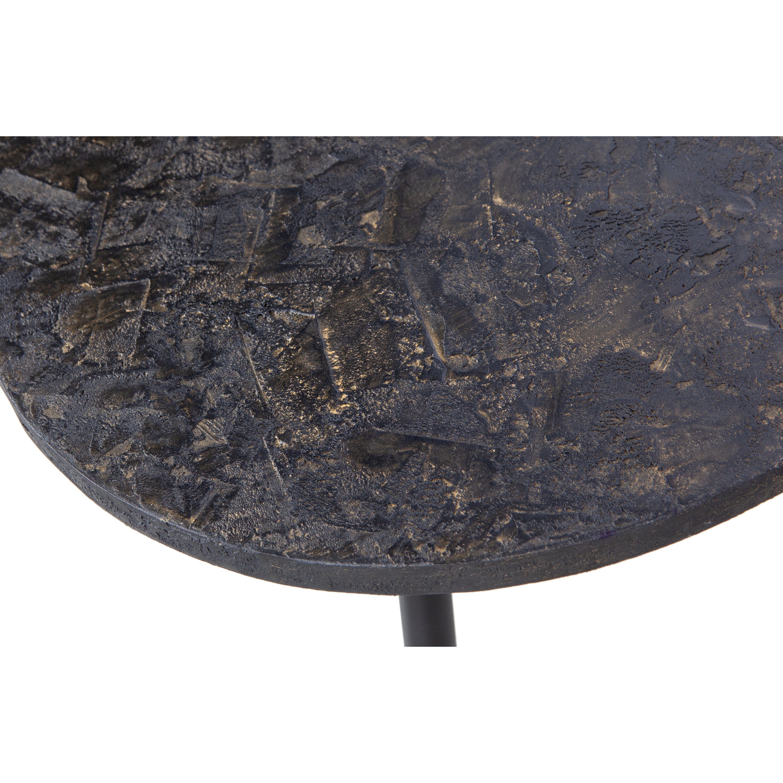 Set van twee elegante bijzettafels Triplex bovenblad met antique goud metalen coating en zwart ijzeren onderstel. Ook geschikt voor buitengebruik H 42 x B 70 x D 48 cm én H 37 x B 60 x D 39 cm Set van 2 bijzettafels Oval komen uit de collectie van het Nederlandse merk WOOOD. De tafels hebben een gerecycled triplex houten tafelblad met een antique gouden metalen coating. De onderstellen zijn gemaakt van ijzer met een antique gouden afwerking. Handig dat door deze afwerking de stoere bijzettafels ook buiten te gebruiken zijn! De grote bijzettafel Oval heeft de afmetingen H 42 x B 70 x D 48 cm met dikte van het tafelblad van 2 cm. De poothoogte is 40 cm. De kleine bijzettafel heeft de afmetingen H 37 x B 60 x D 39 cm met een dikte van het tafelblad van 2 cm en een poothoogte van 35 cm. In gerecycled triplex is er geen FSC-certificaat afgegeven omdat het hout afkomstig is van oud resthout. Het maximale draaggewicht van de bijzettafels per stuk is 20 kg. Dit artikel wordt geleverd als bouwpakket met een duidelijke montage-instructie. Plaats bij harde vloeren viltglijders onder de poten. Dit voorkomt beschadigingen aan de vloer.