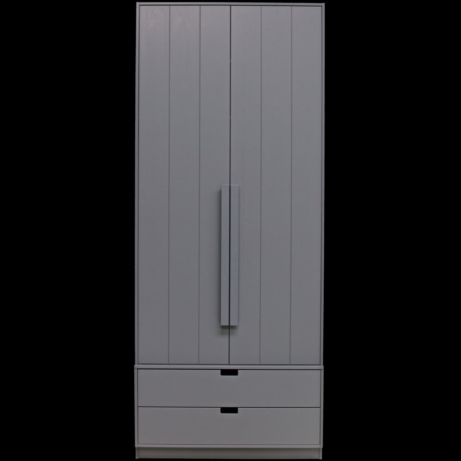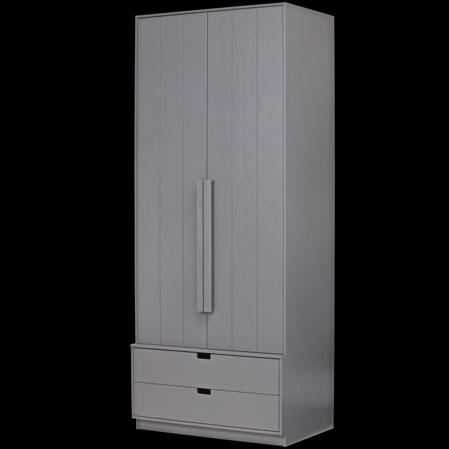 De kast is voorzien van twee legplanken en een roede, wat zorgt voor voldoende ruimte om kleding georganiseerd op te bergen. Onderaan bevinden zich twee ruime lades met softclose, ideaal voor het opbergen van kleinere items zoals ondergoed en sokken.