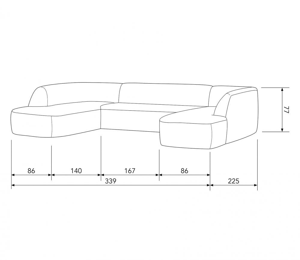 - Royale U-bank van H 77 x B 339 x D 225 cm
