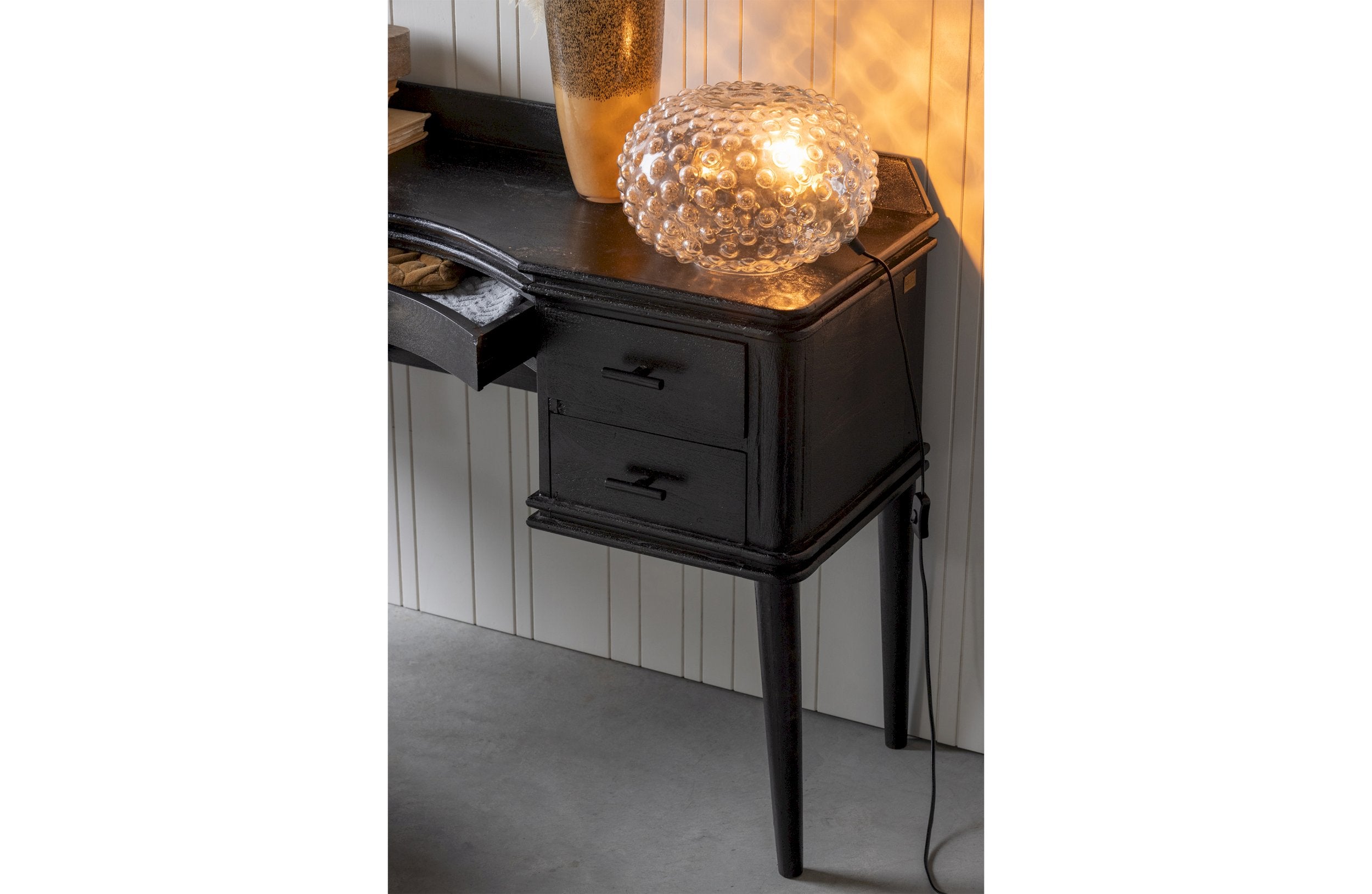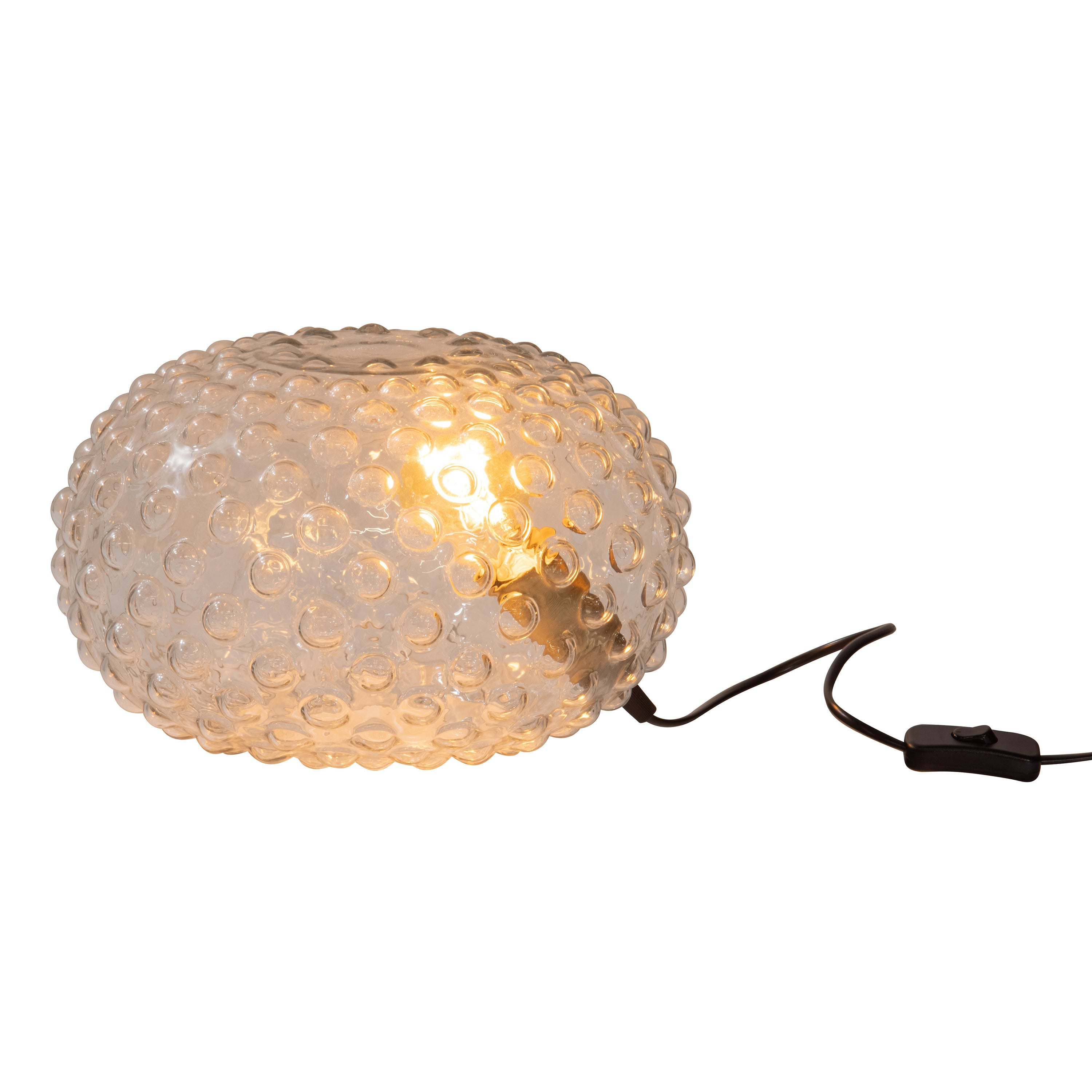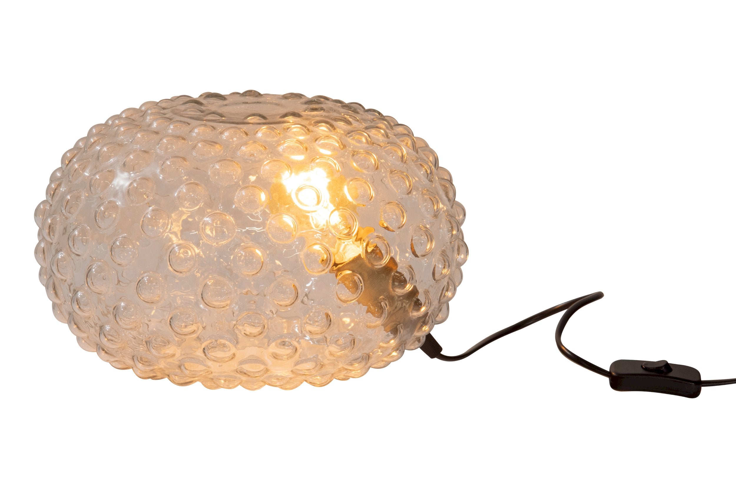WOOOD Soap Tafellamp 30x20x30 cm (hxbxd) Deze opvallende tafellamp Soap is van het Nederlandse merk WOOOD. Met zijn bellen-design verspreid Soap een sfeervol licht in de woonruimte. Het tafellamp heeft een gewicht van 2kg. Via een opening aan de bovenzijde kan de lichtbron eenvoudig ingedraaid worden. De fitting is geschikt voor een E27 lichtbron. De fitting heeft een goudkleurige messing finish en een zwarte stroomsnoer. De totale lengte van het snoer is 144cm inclusief stekker. De snoerschakelaar bevindt zich op 40cm vanaf de tafellamp. Soap is niet dimbaar. Haal een sfeervol lichtpunt in huis met de stoere Soap. Artikelkenmerken