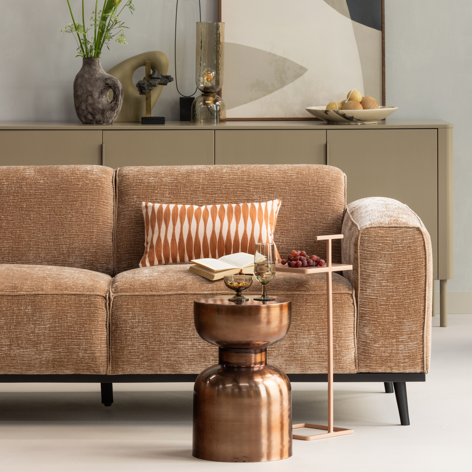 Statement is opgebouwd uit een combinatie van massief hout, spaanplaat, multiplex, normaal schuim en synthetische watten met een dichtheid van 250 g/m3 en een zigzag vering. De zitting bevat een Bonell vering, normaal schuim en synthetische watten met een dichtheid van 250 g/m3. De rugleuning bestaat uit een mix van polyurethaan schuim met een dichtheid van 23 kg/m3. Onze Giro is een luxe velvet chenille stof met een comfortabele, uitnodigende uitstraling. De rijke textuur en kenmerkende driedimensionale structuur geven de stof een moderne look, terwijl de zachte grip zorgt voor extra comfort. Giro is gemaakt van 100% polyester en heeft een Martindale-waarde van 100.000, wat betekent dat de stof bijzonder slijtvast is – perfect voor dagelijks gebruik. Met de juiste verzorging blijft Giro jarenlang mooi en behoudt het zijn hoogwaardige uitstraling. Meubelen uit onze collecties zijn afkomstig van FSC-gecertificeerde leveranciers en worden op diverse manieren behandeld om de kwaliteit en uitstraling te behouden.