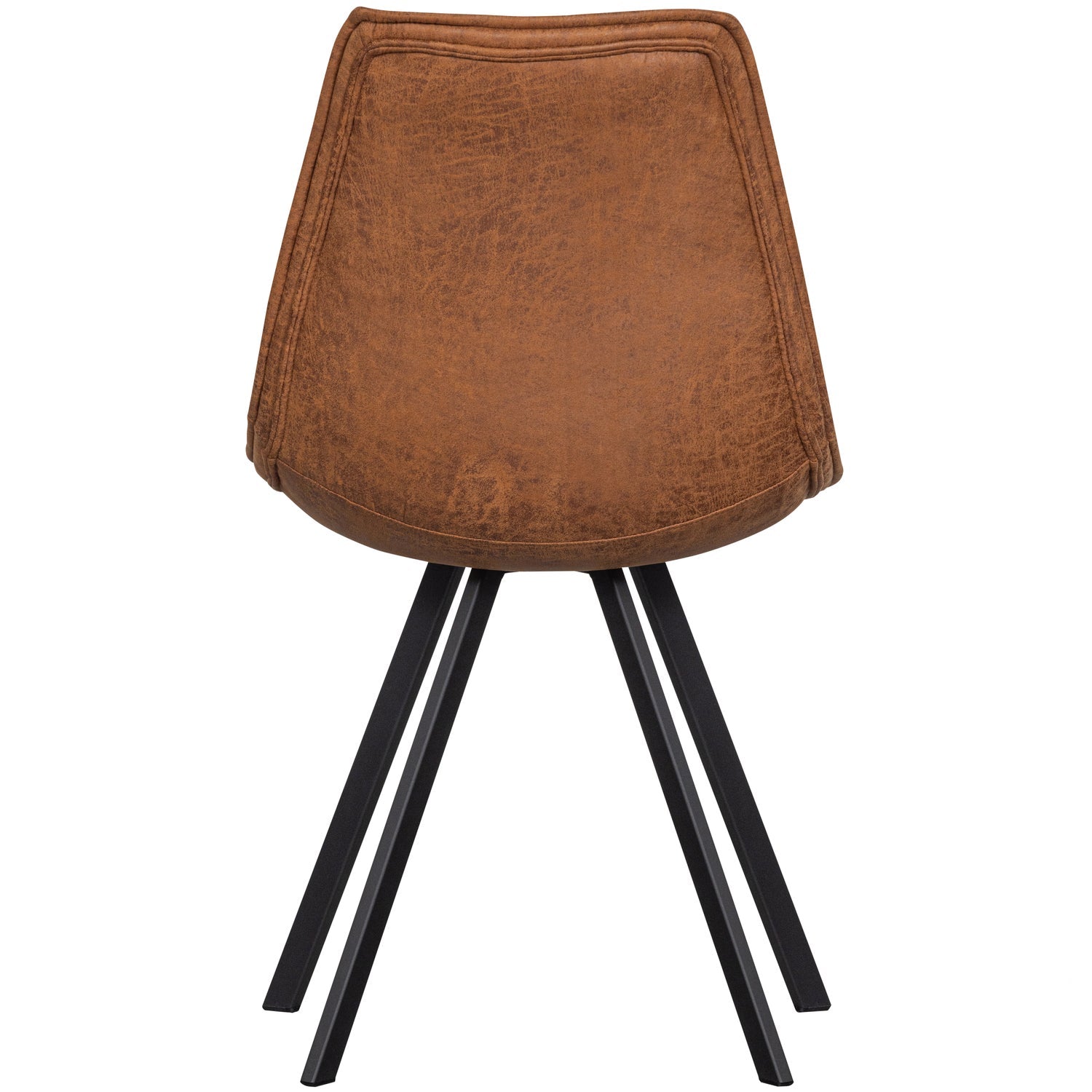 De stoere WOOOD eetkamerstoel Swen staat stevig op zijn zwart gelakte metalen poten. De fraai gevormde kuip met lederlook PU biedt een comfortabele zit. Dankzij het tijdloze design laat Swen zich moeiteloos combineren met andere stijlen voor een speels effect aan de eettafel.