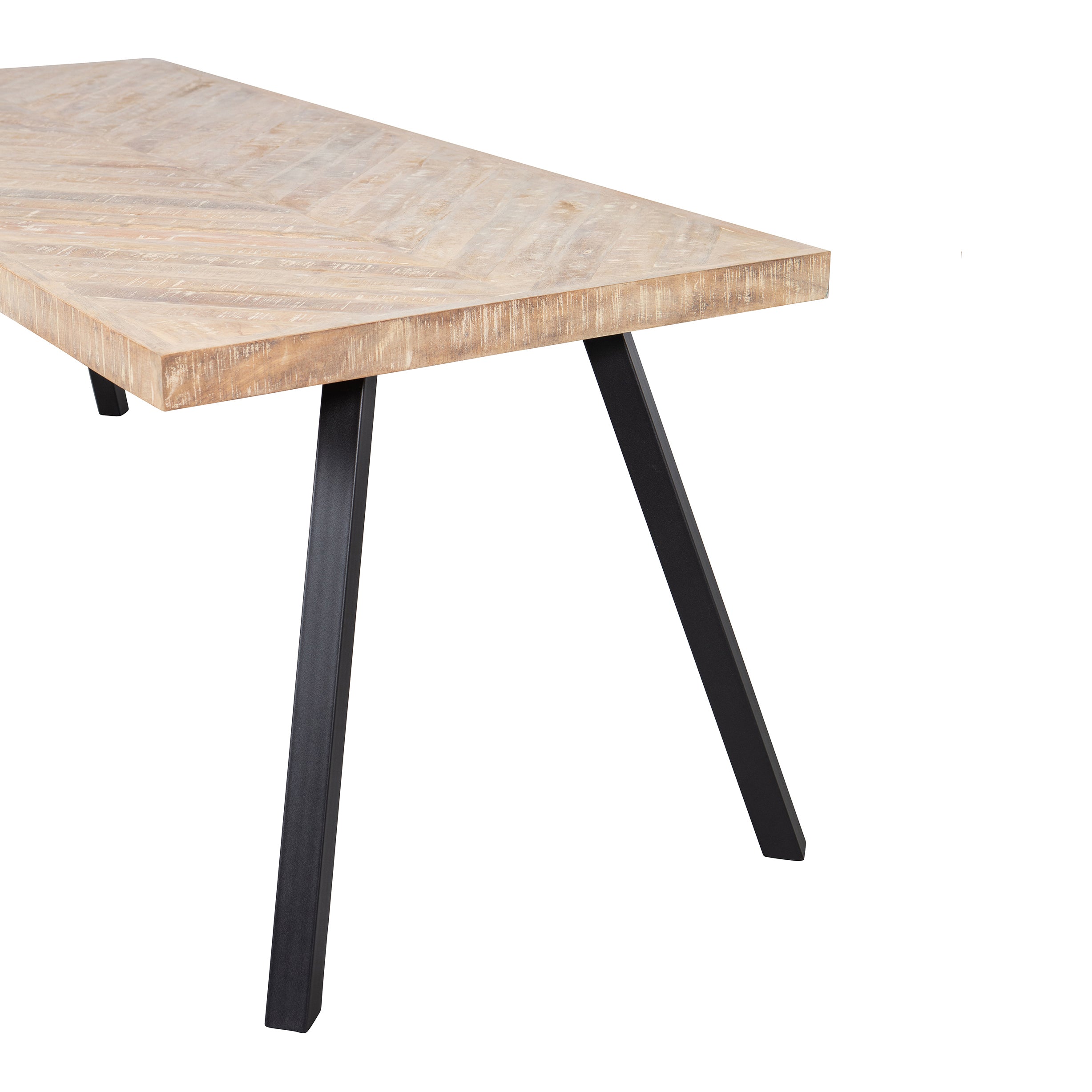 - Het tafelblad is gemaakt van mangohout met een visgraat patroon