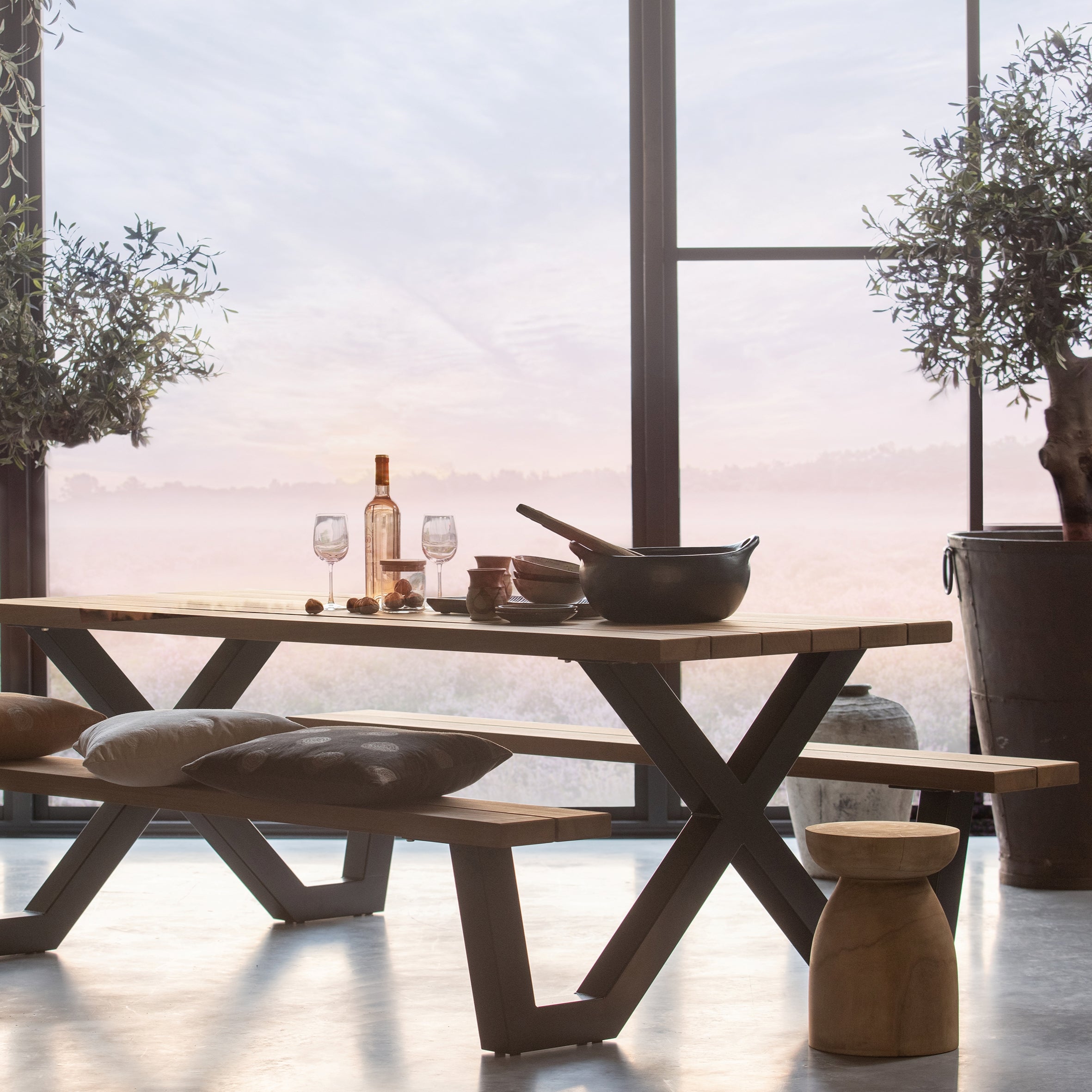 - De picknicktafel heeft een stijlvolle uitstraling