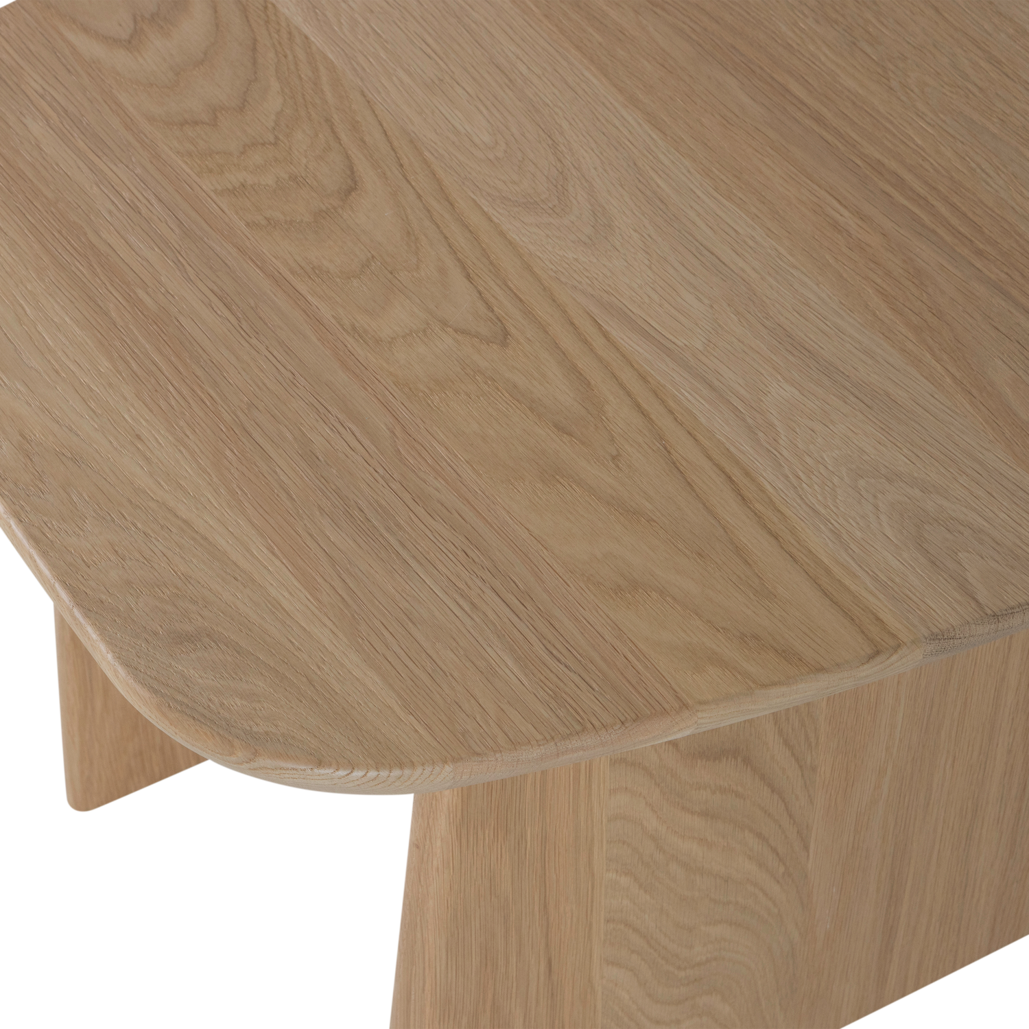 Stoer, organisch en stijlvol. Deze woorden omschrijven de Tablo salontafel uit de Tablo serie van het Nederlandse interieurmerk WOOOD. De salontafel is vervaardigd uit eikenhout met een transparante finish. De eiken salontafel combineert een organische vorm met robuuste poten, waardoor hij perfect past in zowel moderne als minimalistische interieurs. Het natuurlijke houtpatroon geeft warmte aan het geheel. Een echte blikvanger die rust én karakter toevoegt aan je zithoek.