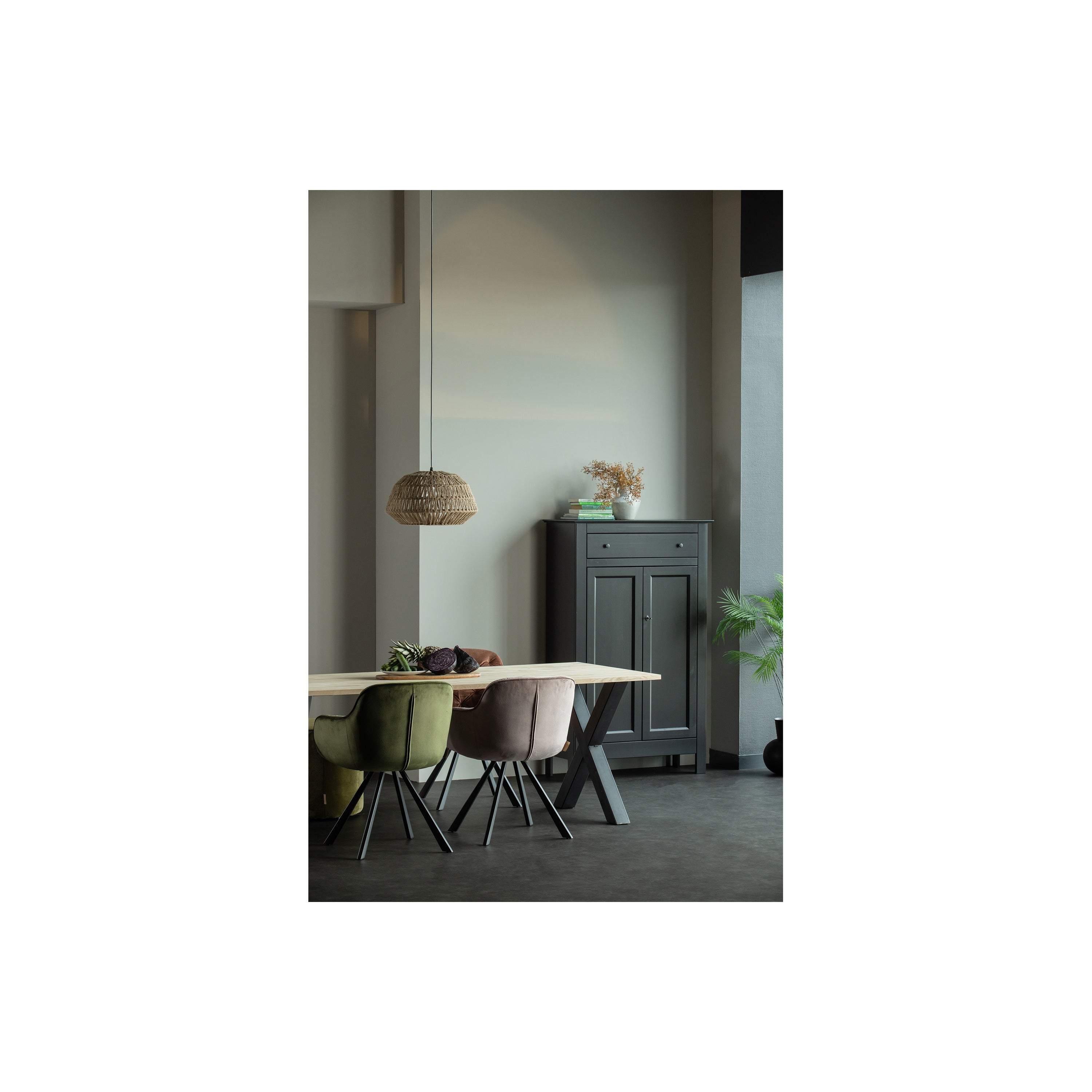 Deze eikenhouten Tablo tafel heeft een lengte van 200 cm en een breedte van 90 cm, zodat je er gemakkelijk met 6-8 personen aan kunt zitten. Het blad is 2,4 cm dik. Het tafelblad heeft een vingerlas houtverbinding en weegt 26,9 kg.