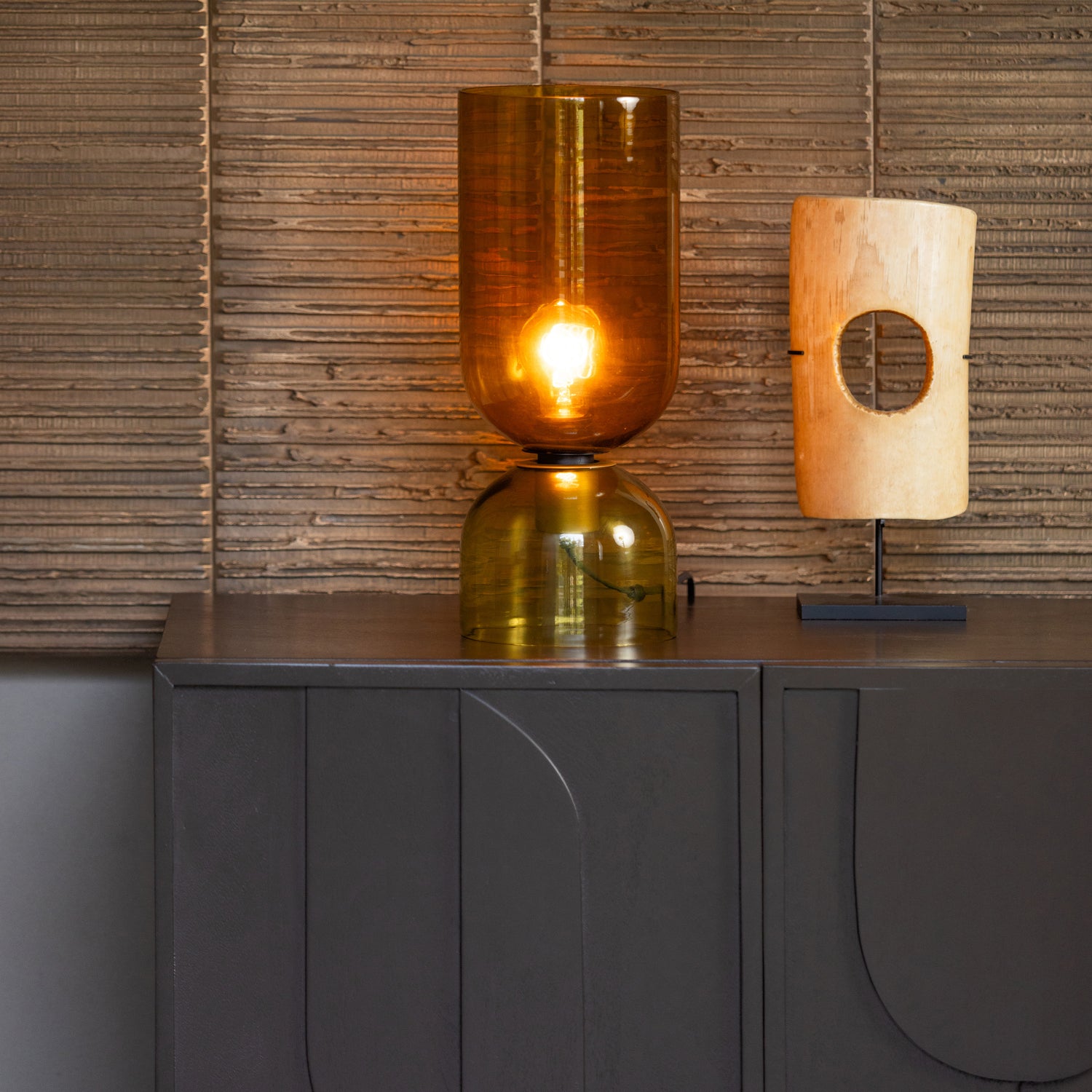 Gigi heeft een vriendelijke uitstraling en verspreidt een mooi zacht licht door het getinte glas. Deze cilindervormige tafellamp valt op door haar unieke design en is een echte eyecatcher in elke kamer. De warme uitstraling van de Gigi lamp sluit naadloos aan bij verschillende interieurstijlen. De Gigi tafellamp heeft een zwart snoer van 1,35 meter lang en is voorzien van een aan- en uitschakelaar. Gigi is geschikt voor een lichtbron met grote fitting E27 en wordt exclusief lichtbron geleverd.
