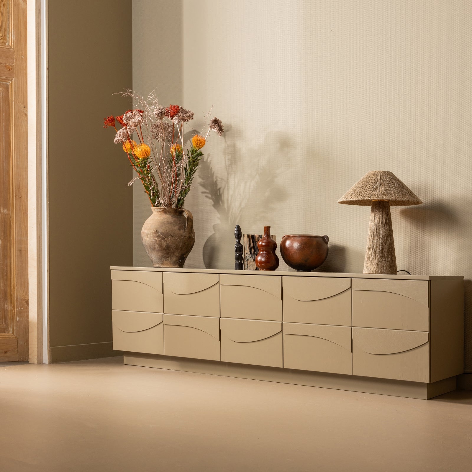 Organische vormen en een speels 3D-effect zijn de kenmerken van de laatste woontrends. De Teo opbergserie omarmt deze karaktertrekken volledig. Teo is ontworpen en geproduceerd voor de collectie van het Nederlandse interieurmerk WOOOD en is vervaardigd uit grenenhout met een mooie, aardse tint.