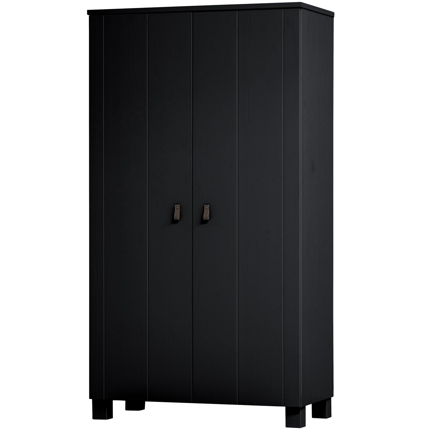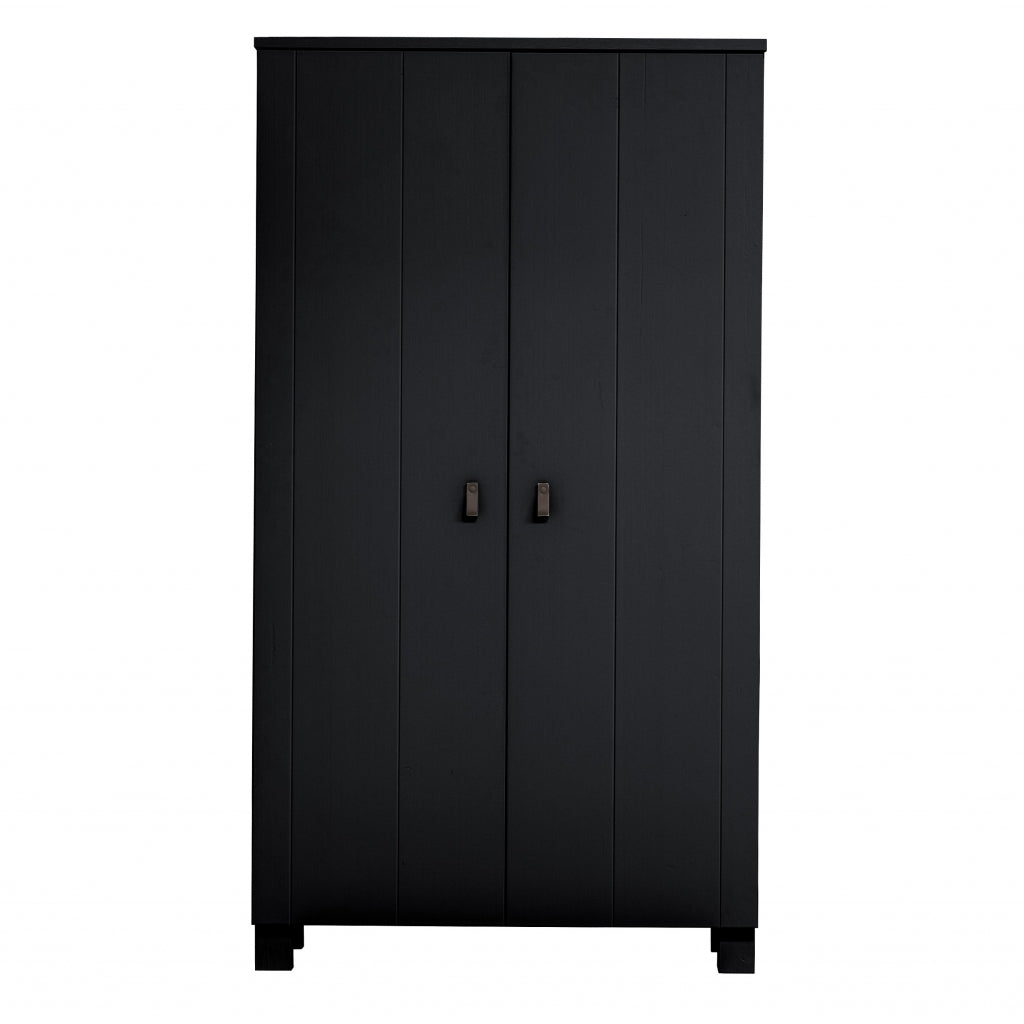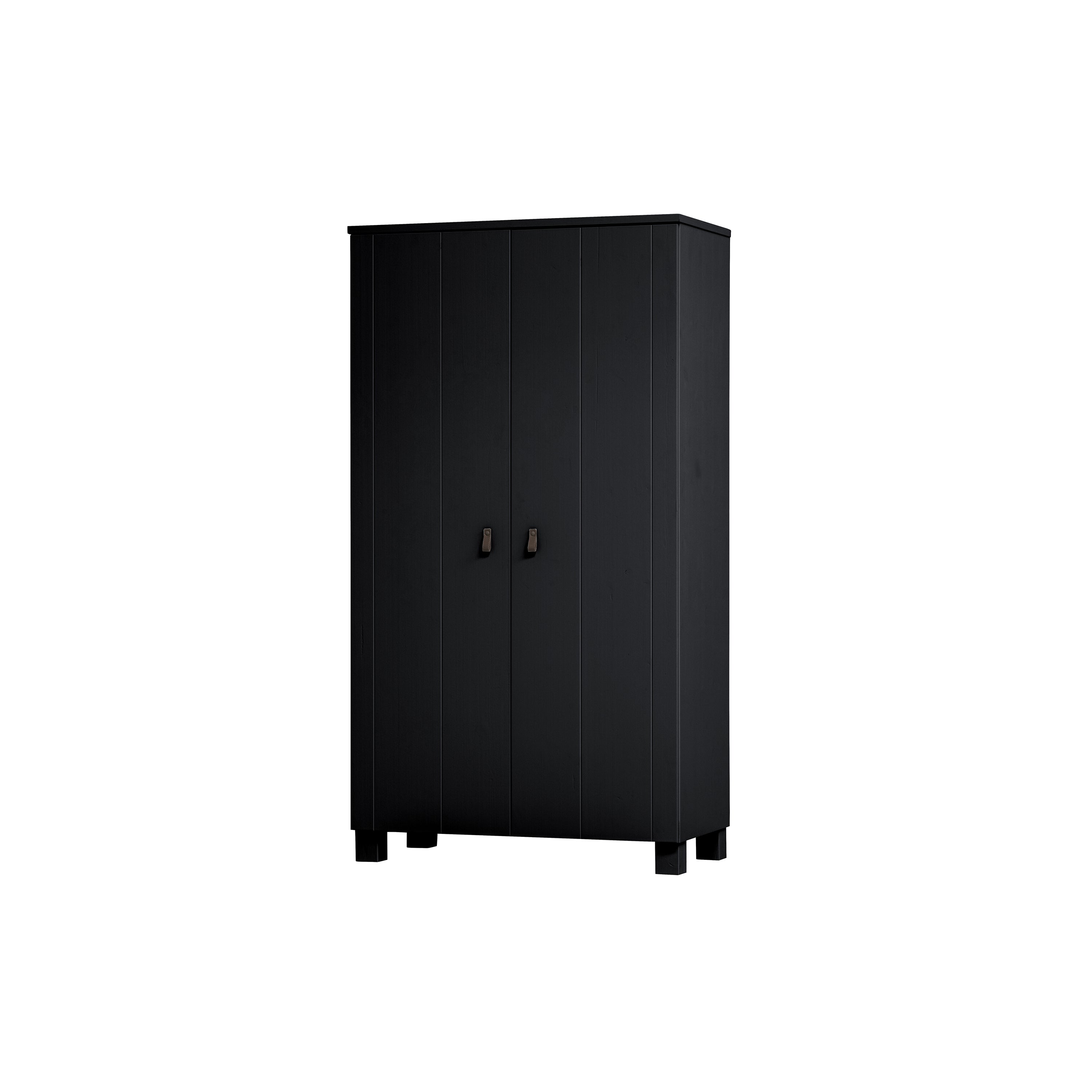 Garderobekast Ties is een Nederlands fabricaat van het merk WOOOD. Deze massief grenen hang/leg kast heeft een geborstelde afwerking en de deuren hebben 2 verticale v-groeven. De grenenhouten meubelen uit onze collecties zijn afkomstig van FSC-gecertificeerde leveranciers en worden op diverse manieren behandeld. Het interieur van de garderobekast is van melamine en bestaat uit één brede legplank bovenin met daaronder links een gedeelde roede en rechts drie gedeelde legplanken. De deur is voorzien van leren handgrepen in de kleur bruin. De garderobekast Ties is verkrijgbaar in de kleuren wit en diepzwart (RAL9005). De gebruikte verf is watergedragen.