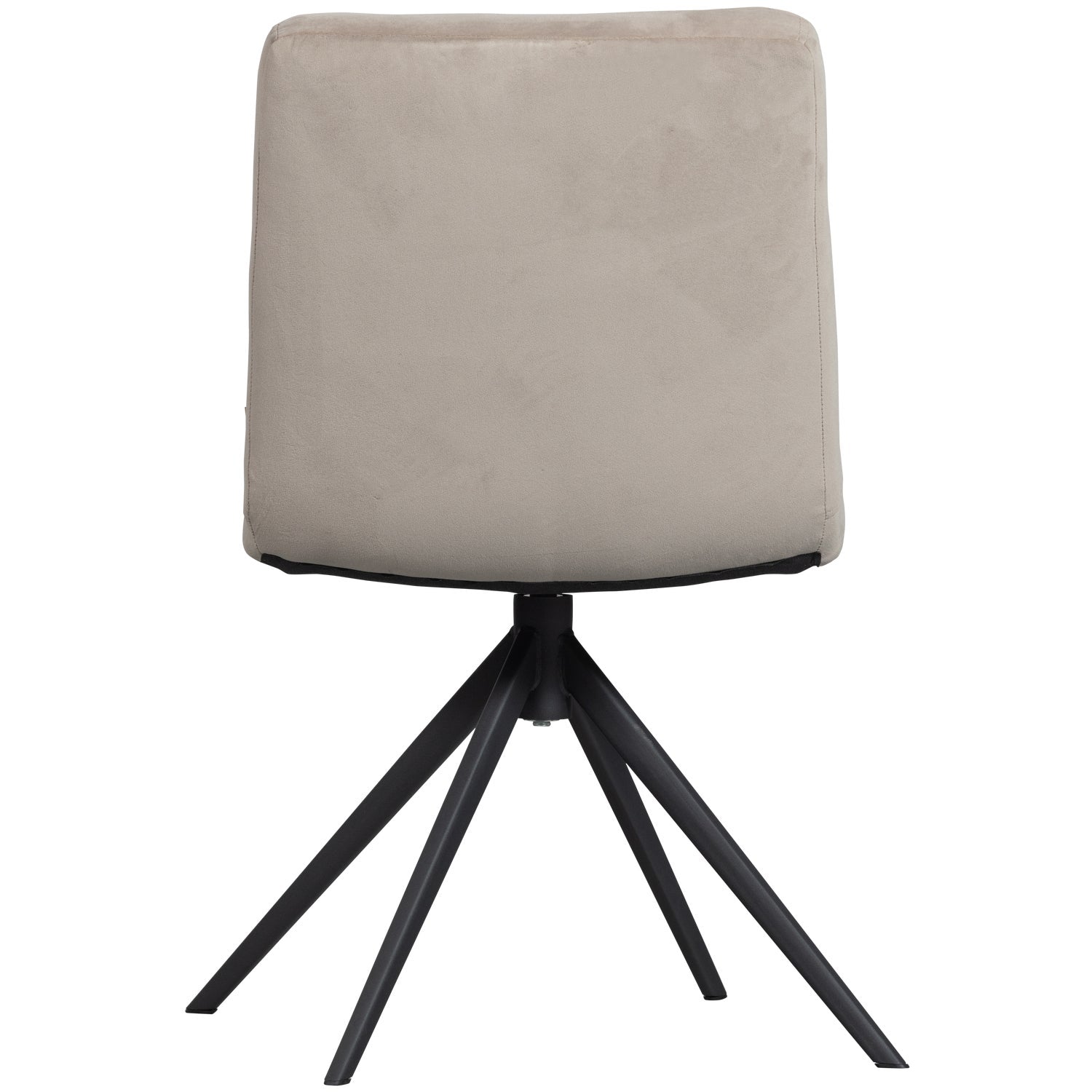 Vinny is bekleed met een matglanzende velours (100% polyester) en is daardoor zeer eenvoudig in onderhoud. De stoel rust op een zwart metalen onderstel met vier poten en een soepel draaisysteem. De vulling van polyurethaanschuim biedt hoog zitcomfort – perfect voor eindeloos tafelen.