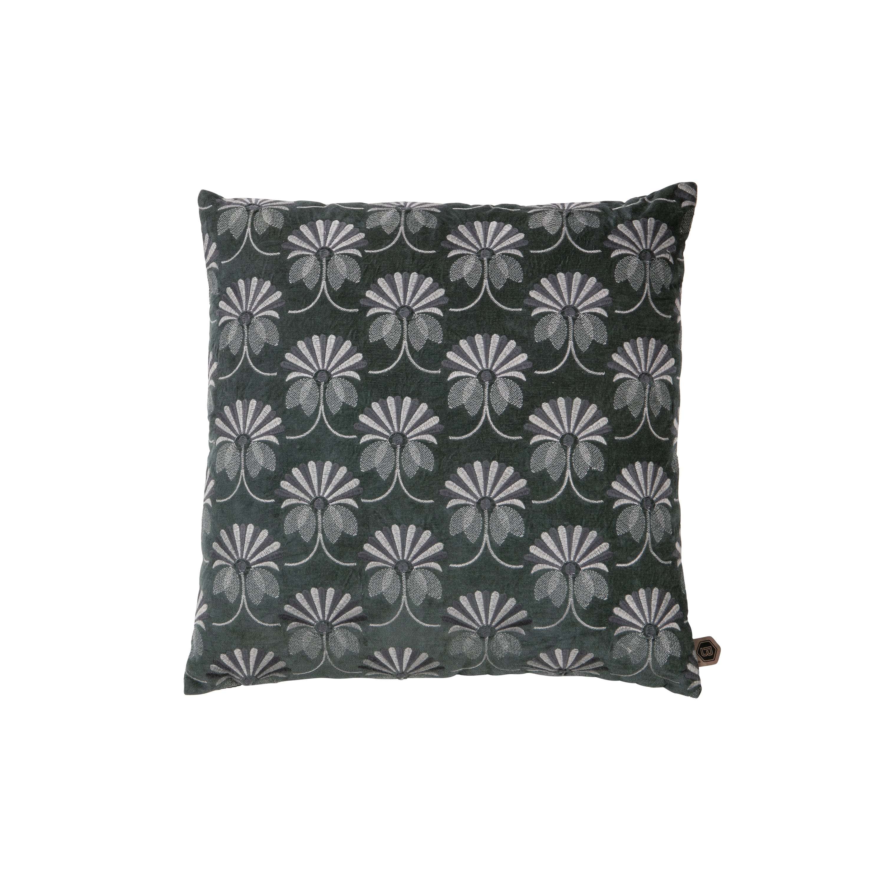 WOOOD Vintage Floral Kussen - Velvet - Steel - 48x48