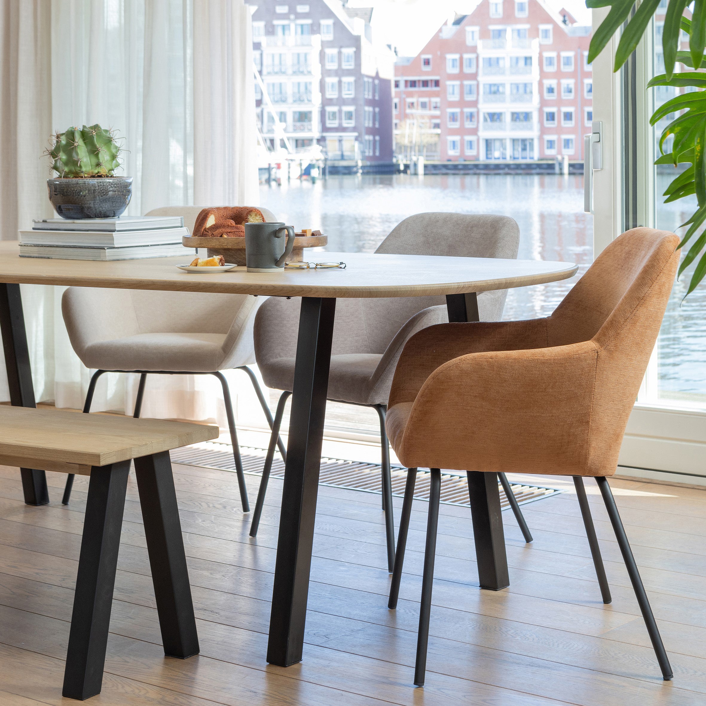 Vos is bekleed met geweven chenille stof. Onze Ava is een geweven stof met een zachte, fluweelachtige grip. De stof heeft een egale kleuring en is geweven met een chenille draad uit 100% gerecyclede polyestervezels, dit maakt de stof een duurzame keuze! Met een Martindale van 30.000 zal de stof niet snel sporen van slijtage tonen. De Ava geweven stof staat bekend om haar kleurvastheid en eenvoudige onderhoud.