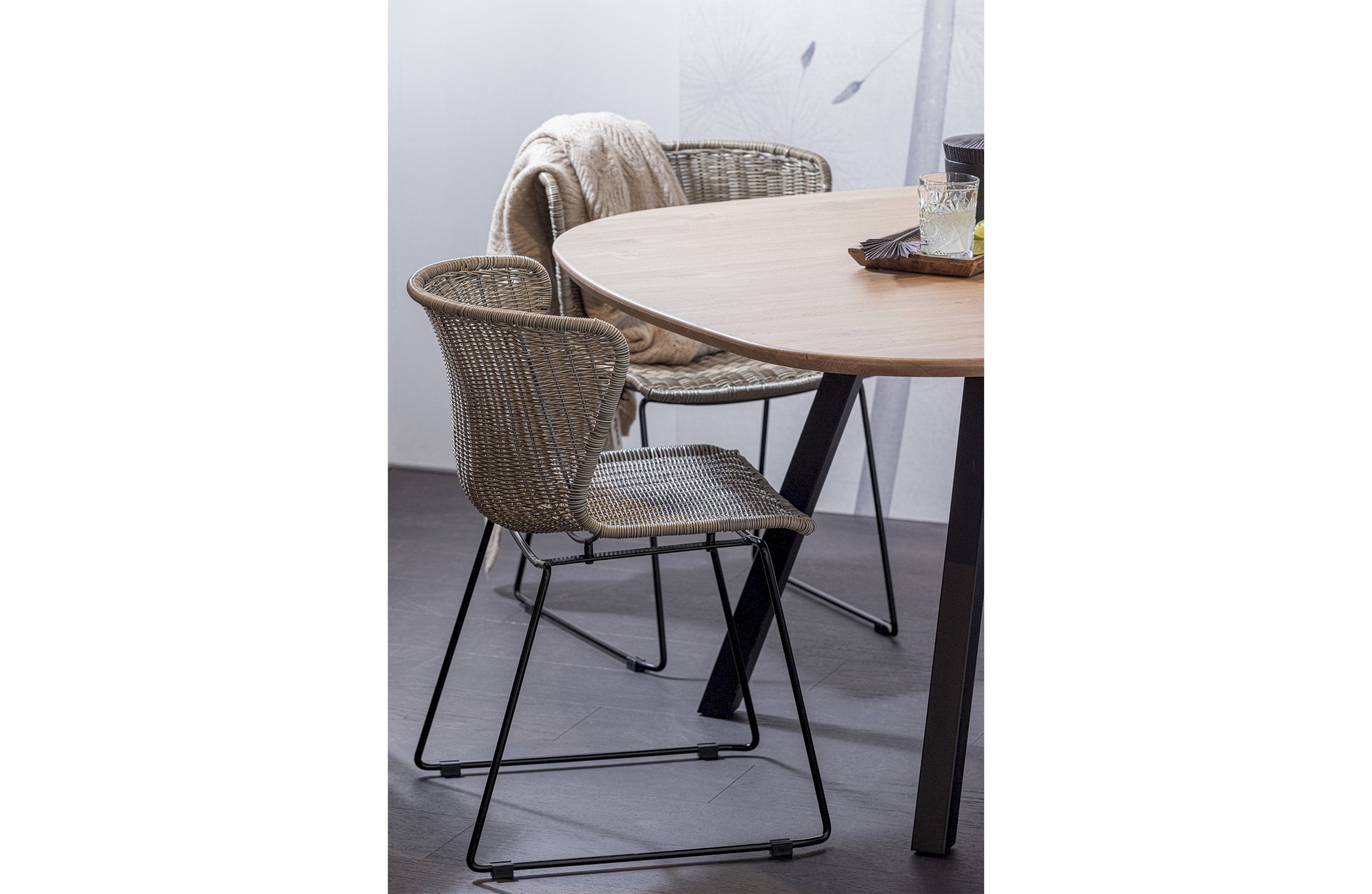 Deze stoere Wings stoelen van het Nederlandse merk WOOOD voldoen aan de woontrend van dit moment; rotan en zwart staal. De zitting is gemaakt van gevlochten polyester rotan in een natuurlijke kleur. Het stalen frame heeft een zwarte poedercoating. Plaats voor het beschermen van harde vloeren, binnenshuis, viltglijders onder de poten. Zowel de zitting als het frame zijn afgewerkt met een outdoor coating, dit maakt Wings geschikt voor binnen en buiten gebruik.