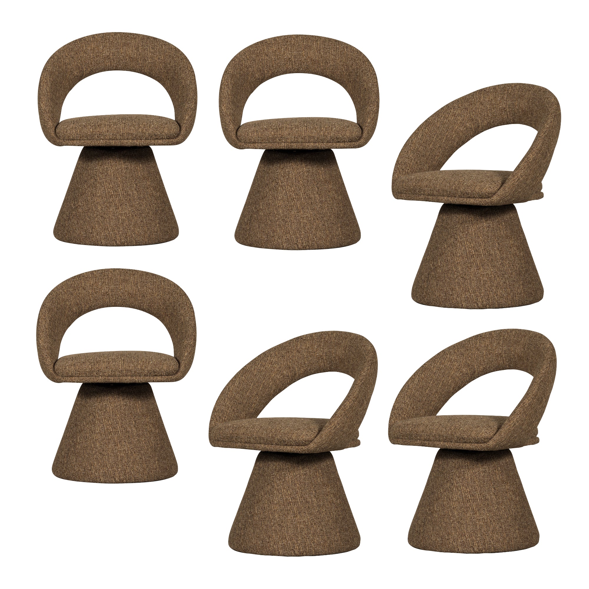 De Winter eetkamerstoel van het Nederlandse merk WOOOD heeft een strakke, moderne uitstraling. De stoel is bekleed met een zachte geweven stof en staat op een draaipoot die volledig in dezelfde kleur is gestoffeerd. Het doordachte design zorgt voor urenlang comfortabel tafelen.
