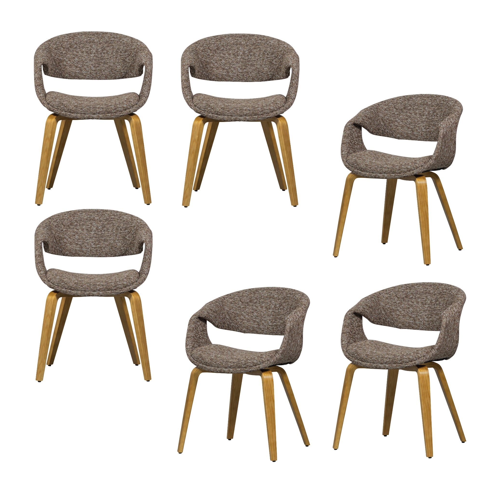 De Yossi eetkamerstoel komt uit de collectie van het Nederlandse merk WOOOD en heeft een stevig houten onderstel en een comfortabele zit. De stoel is in verschillende uitvoeringen verkrijgbaar, zodat je de perfecte match voor jouw interieur kunt vinden. De Yossi is bekleed met een geweven stof van 100% polyester, wat zorgt voor een stijlvolle uitstraling. Een bijzonder detail is de afwerking rondom de armleuning. Deze elegante en comfortabele eetkamerstoel is perfect om urenlang te tafelen.