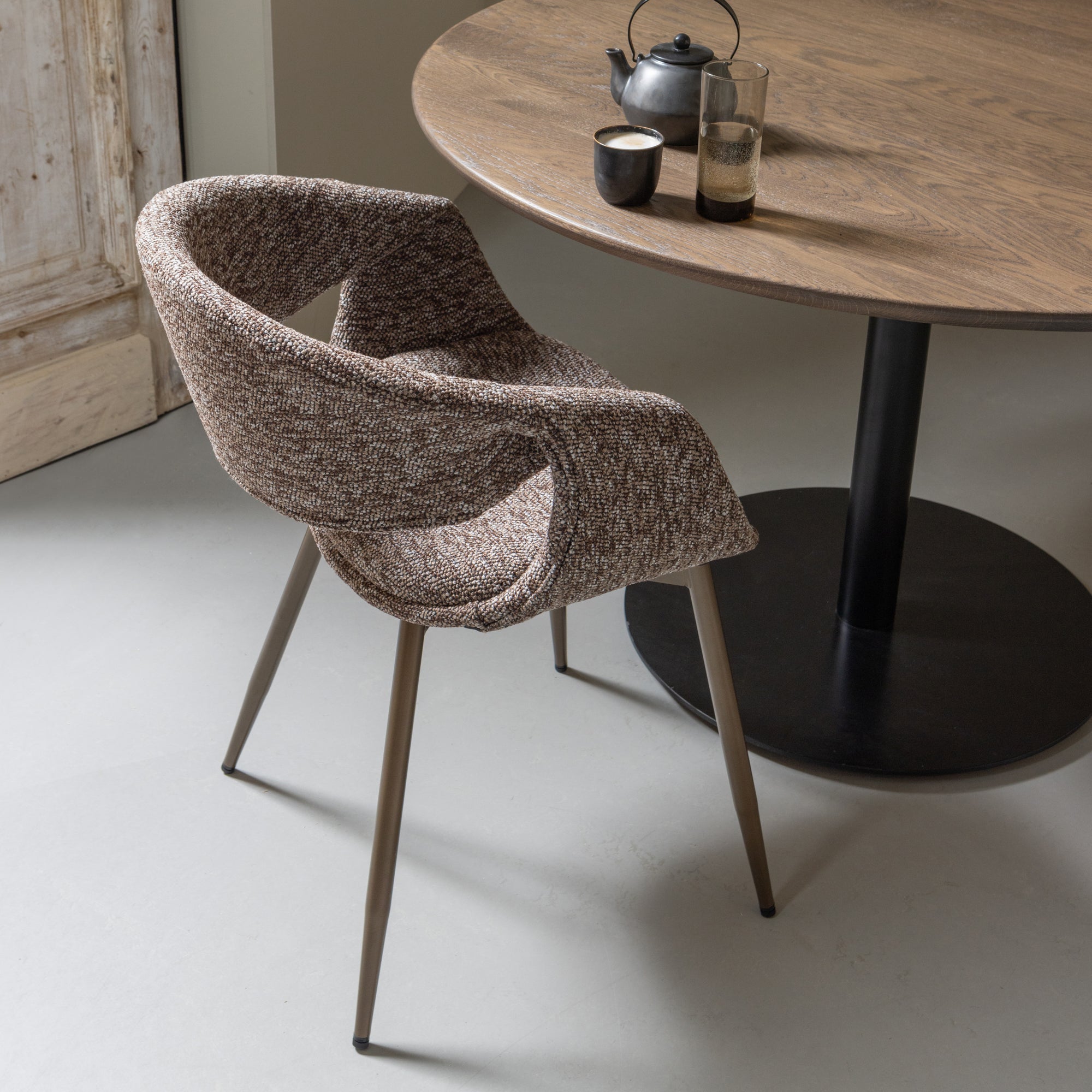 De Yossi eetkamerstoel komt uit de collectie van het Nederlandse merk WOOOD en heeft een stevig houten onderstel en een comfortabele zit. De stoel is in verschillende uitvoeringen verkrijgbaar, zodat je de perfecte match voor jouw interieur kunt vinden. De Yossi is bekleed met een geweven stof van 100% polyester, wat zorgt voor een stijlvolle uitstraling. Een bijzonder detail is de afwerking rondom de armleuning. Deze elegante en comfortabele eetkamerstoel is perfect om urenlang te tafelen.