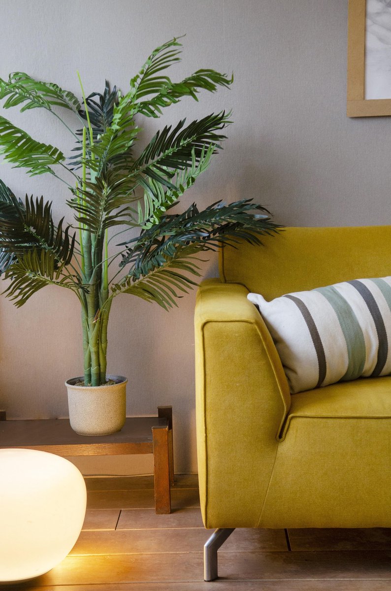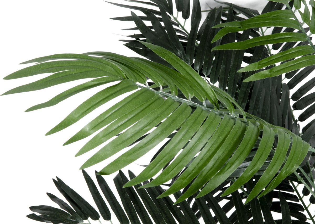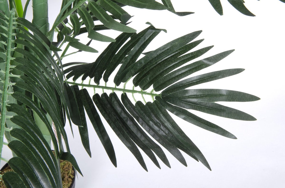 Deze kunst palmboom zorgt voor een groene sfeer in je woning of op kantoor. Onderhoudsvrij uiteraard. De palmboom heeft een realistische natuurlijke uitstraling en wordt geleverd inclusief pot. De palmboom is voorzien van gedetailleerde bladeren en stengels. Deze kunnen naar eigen inzicht in vorm worden gebogen. De productfotos bevatten veel detail, we adviseren om deze goed te bekijken om te bepalen of je deze kunst palmboom vind passen bij je interieur. De hoogte is maar liefst 130cm.