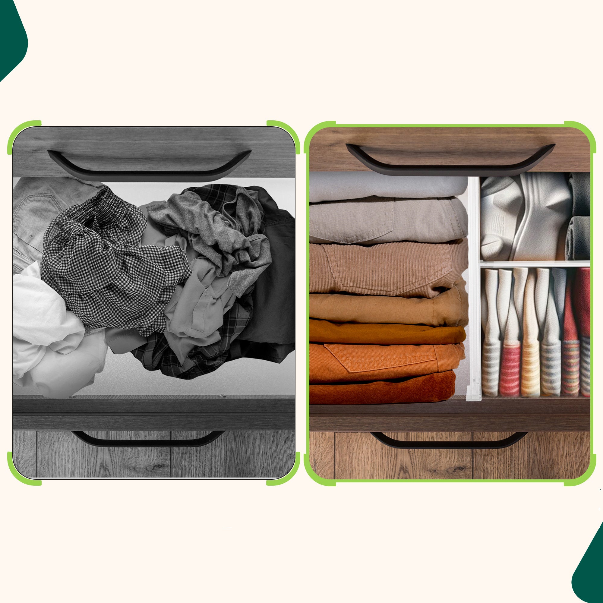 Jouw rommelige lades organiseren zonder veel ruimte te verliezen? Met de lade verdelers ben je flexibel en deel je de lades in zoals jij het wilt.