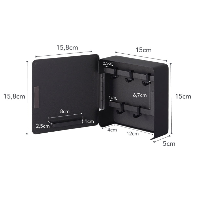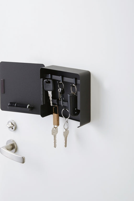 Deze moderne sleutelbox van Yamazaki is de ideale oplossing om sleutels veilig en geordend op te bergen in je hal. De box kan door zijn magnetische achterkant op elk glad metalen oppervlak worden bevestigd maar kan ook aan een muur worden geschroefd. De klepje houdt de inhoud verborgen en zorgt voor een nette en opgeruimde uitstraling.