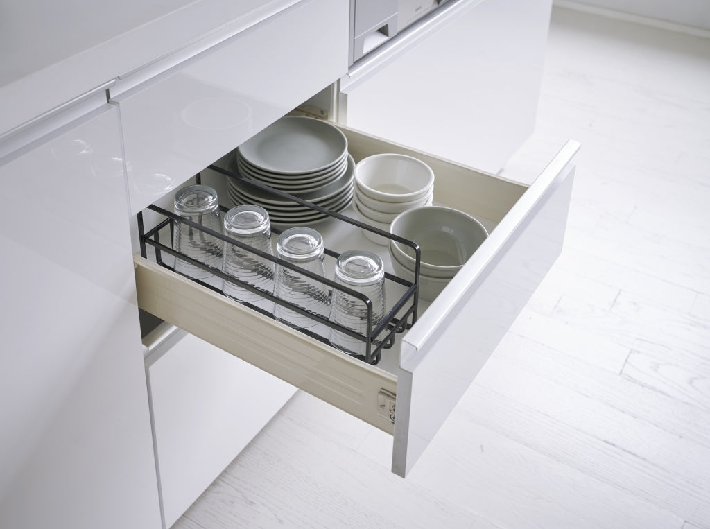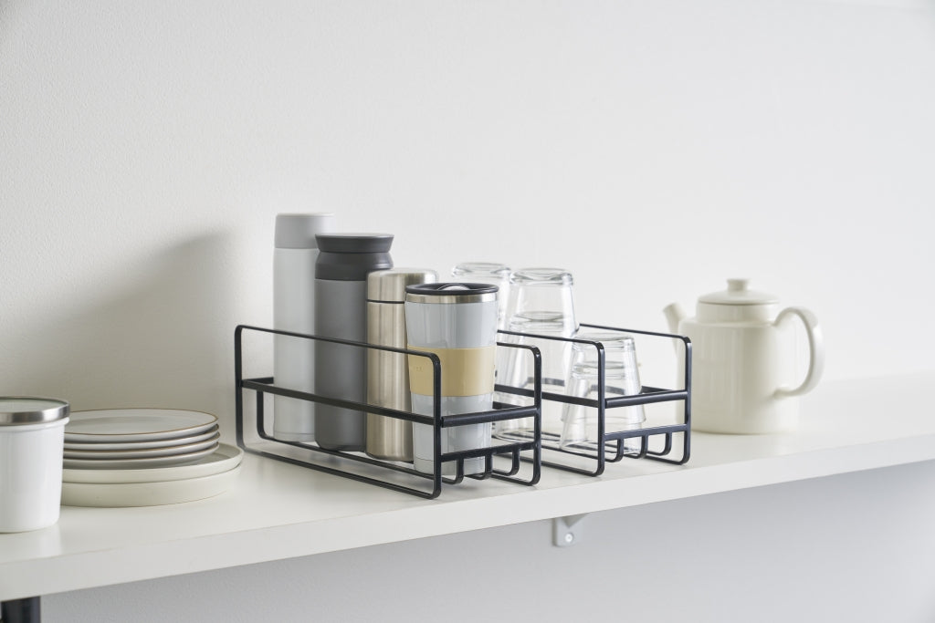 Dit slimme rek van Yamazaki helpt je keukenkastjes georganiseerd te houden en zorgt ervoor dat mokken, flessen en glazen veilig worden opgeborgen. Het heeft een praktische handgreep met een siliconen hoes die het gemakkelijk maakt om het rek uit het kastje te trekken, zodat je ook gemakkelijk bij de achterste glazen kunt.