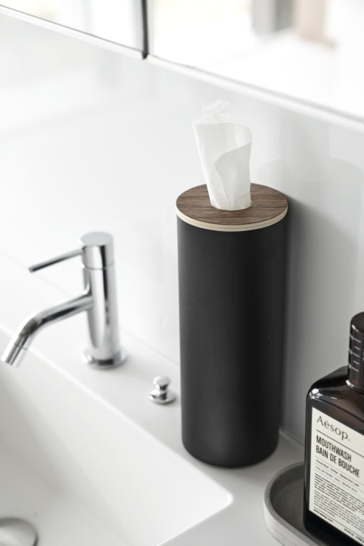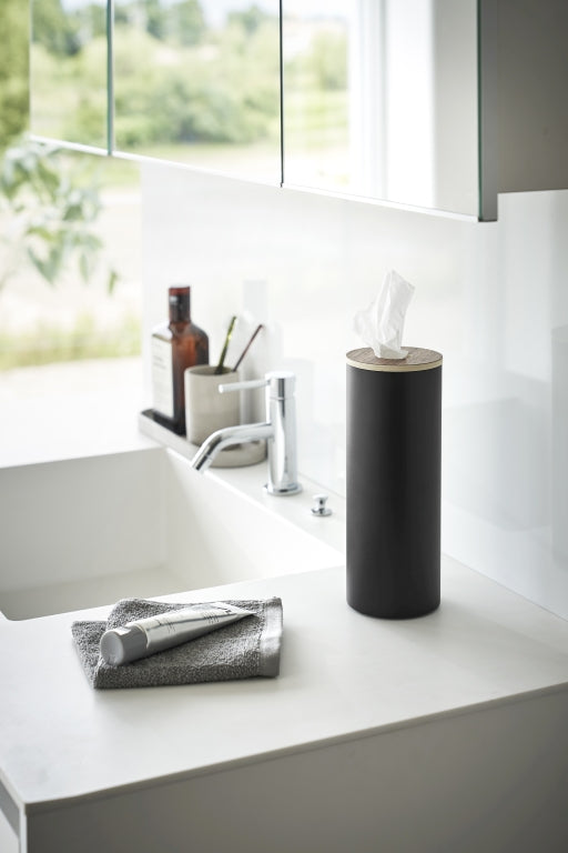 Deze cilindrische Tissue Case van Yamazaki is stijlvol en handig en biedt een unieke manier om tissues of cosmetische doekjes op te bergen.