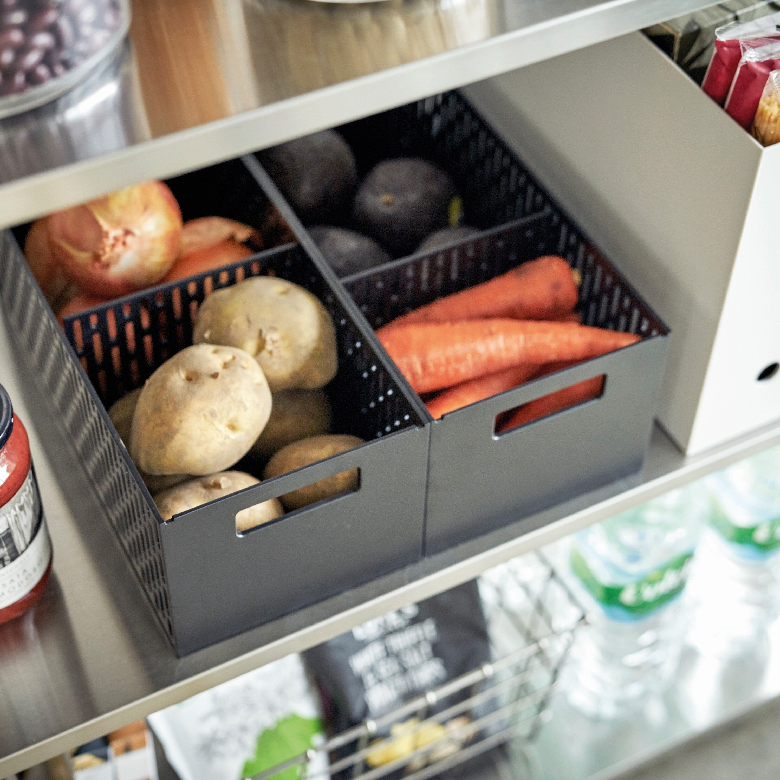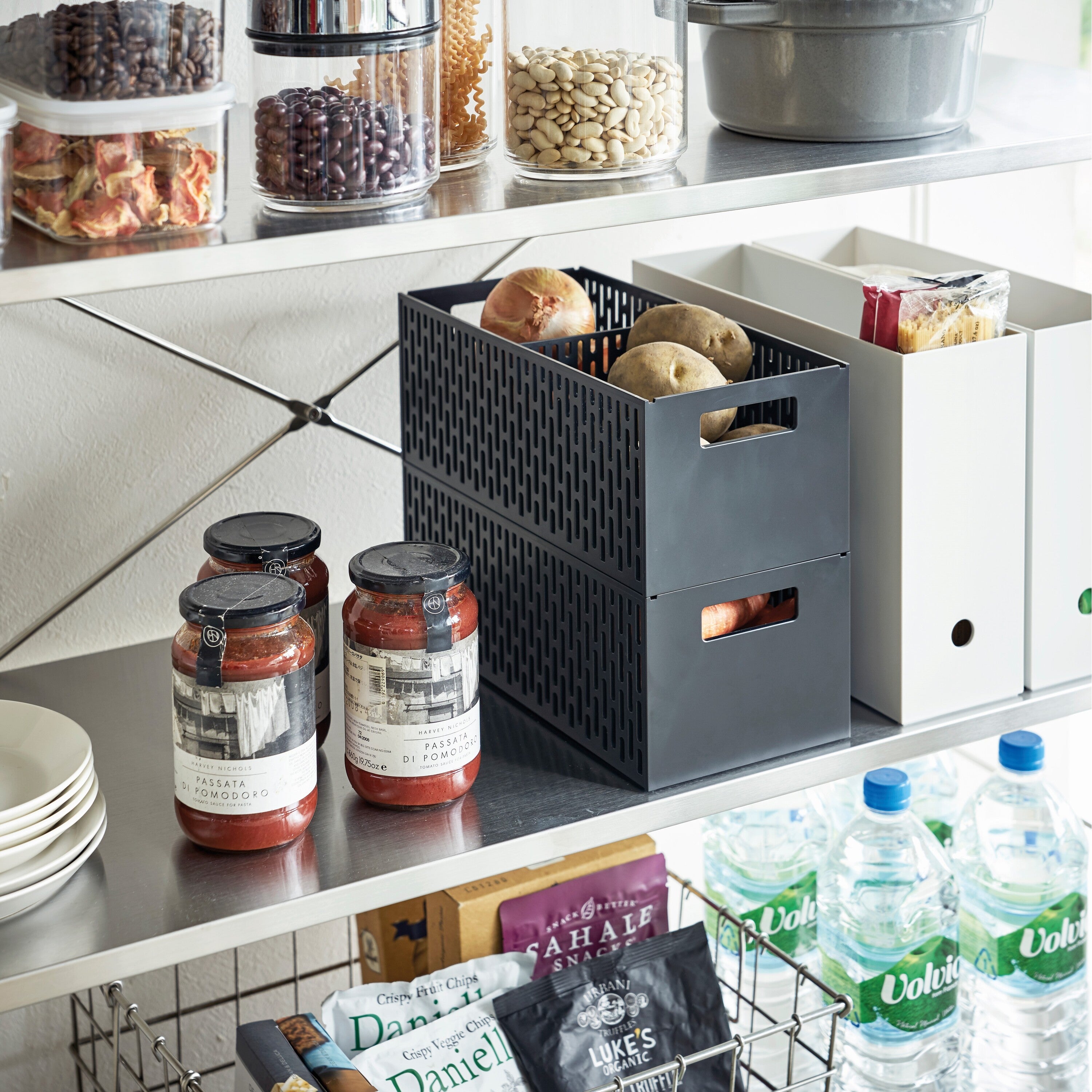 Met deze Yamazaki Tower opbergmand ziet je huis er netjes en geordend uit. Dankzij de verplaatsbare scheidingswand bepaal je zelf de grootte van de twee vakken. De mand is tot twee niveaus opstapelbaar en met de handgreep trek je hem er eenvoudig eruit.