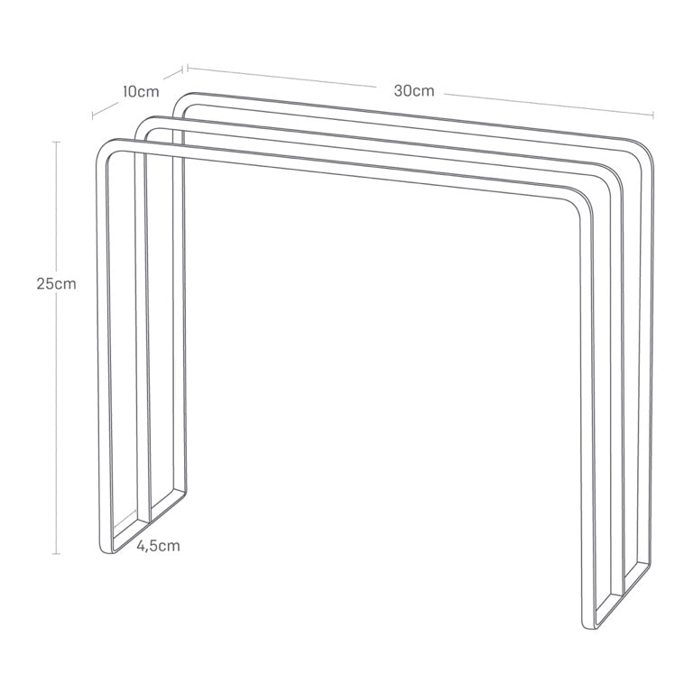 De dishcloth hanger van Yamazaki kan zowel verticaal als horizontaal worden gebruikt om vaatdoeken netjes op te hangen. De houder is ook voorzien van twee aparte haken, die dienen als extra ophangruimte voor kleine items zoals sponsjes.