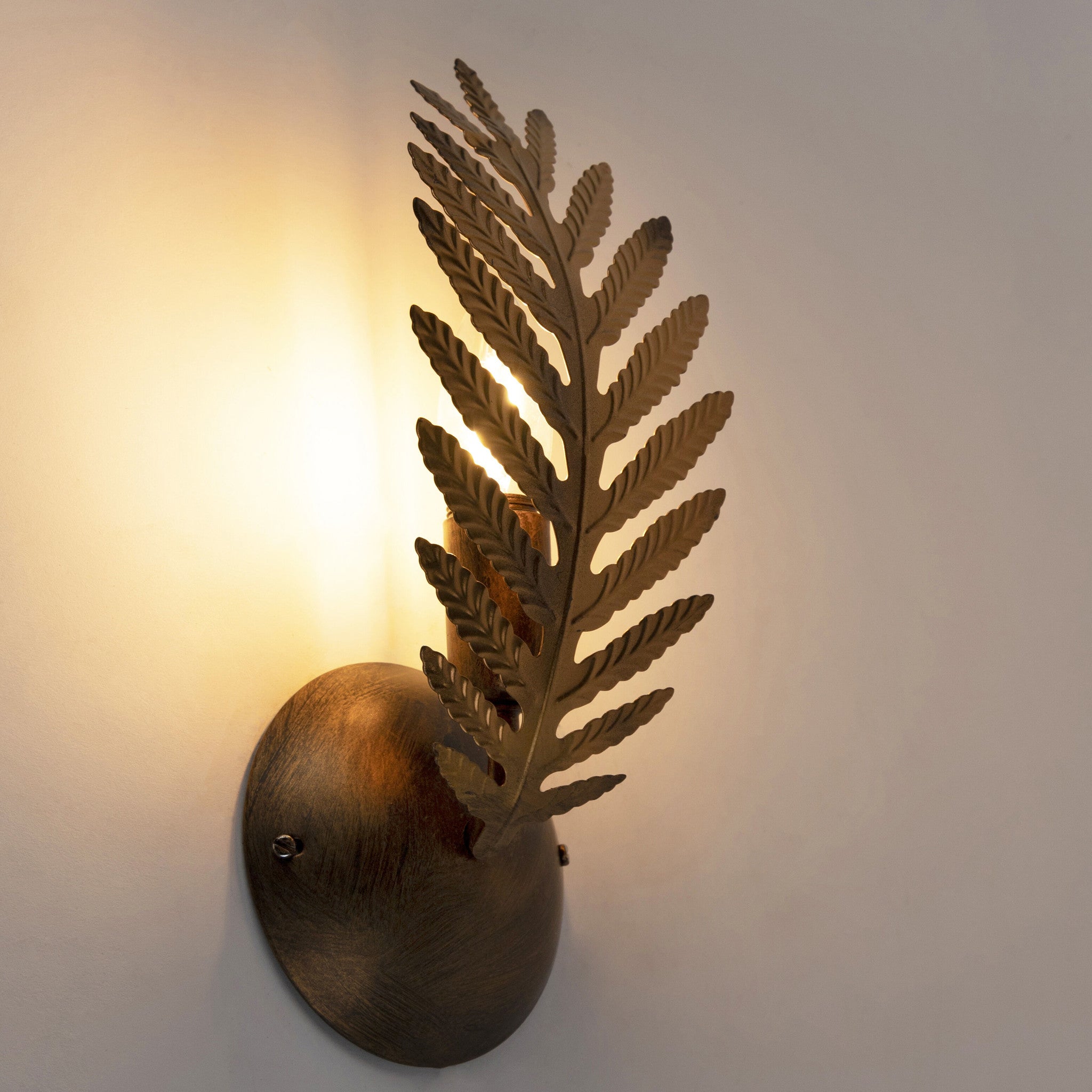 Leuke tropische wandlamp die is voorzien van 1 gebogen metalen blad. Dit kunstwerk aan de wand geeft gegarandeerd sfeer in elke ruimte. Ook prima te combineren met de andere armaturen uit de Palm familie.