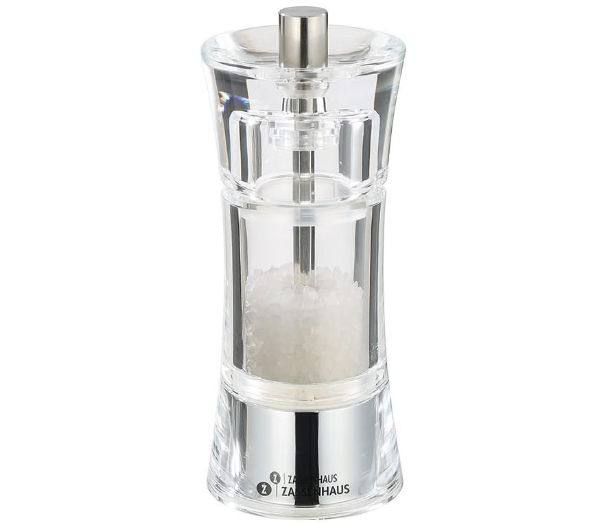 De Zassenhaus Zoutmolen Aachen Transparant 14 cm is een must-have voor elke kookliefhebber. Het is een zoutmolen waarmee je zout kunt malen. Door het keramische maalwerk kun je de grofheid van het zout aanpassen, van fijn tot grof. De transparante behuizing laat je zien hoeveel zout er nog in de molen zit, zodat je nooit zonder komt te zitten. Je moet hem kopen omdat hij duurzaam, stijlvol en functioneel is. Met deze molen haal je een stukje kwaliteit in huis. Om de molen te gebruiken, vul je hem met zout en draai je aan de bovenkant om het zout te malen. Je krijgt een complete zoutmolen, klaar voor gebruik.